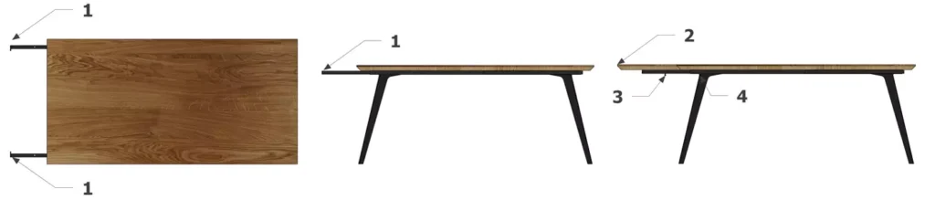 - Slide out the two metal profiles (NR 1) located under the countertop on the given side to a length of about 40 cm