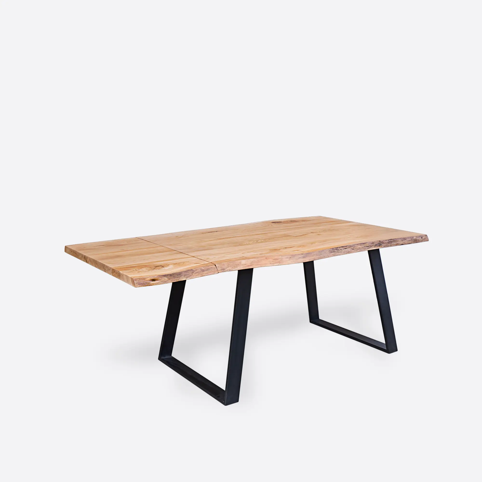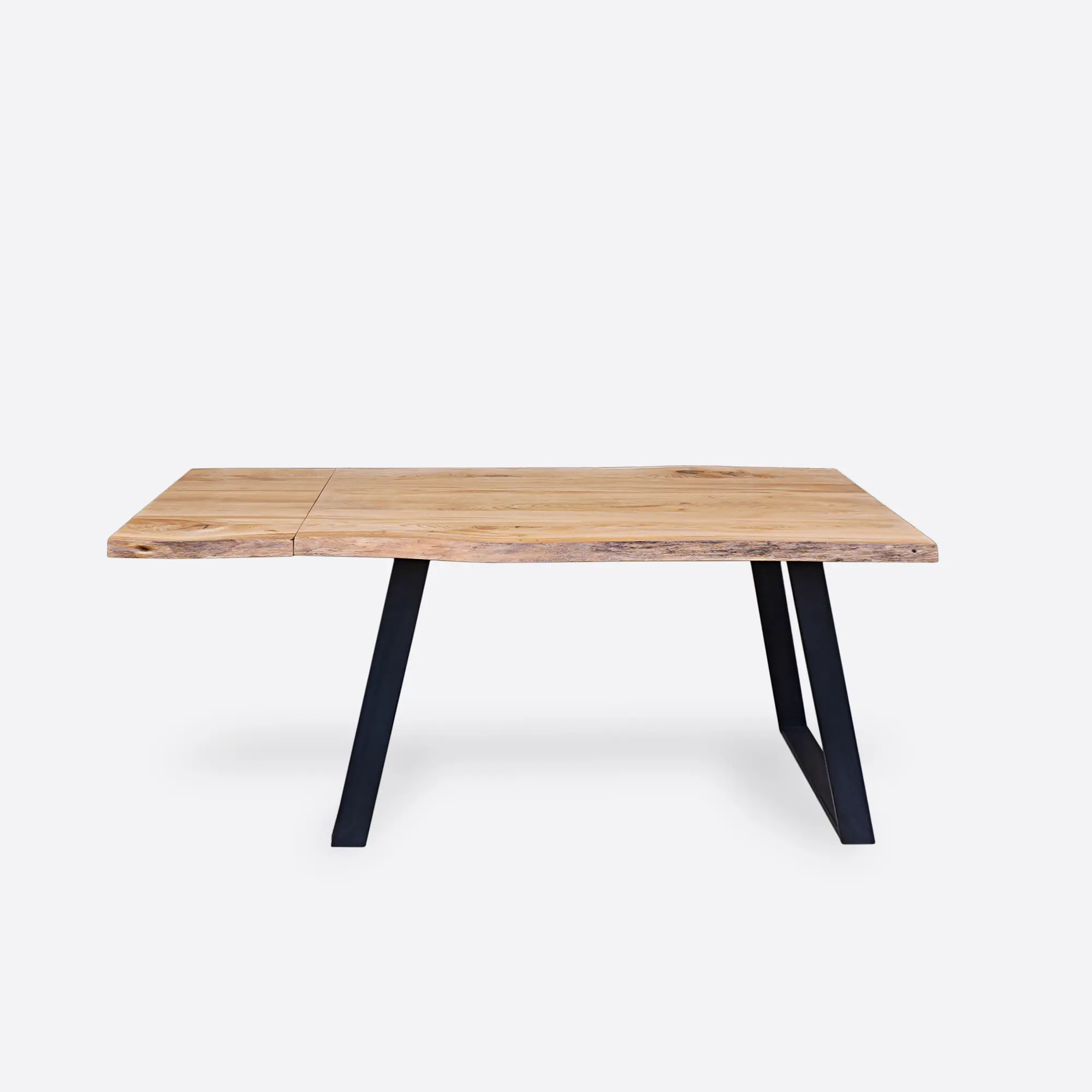 Guides for mounting extension plates are built into the metal structure of table. On the other hand, table top extension plates require separate storage. But you don’t have to worry about where and how you’ll store your extension plates! To orders of extendable tables we add special box for storing extension plates free of charge. Thanks to this, form of table is preserved and extension plates don’t have significant impact on structure of table. Extendable table is nod to functionality, which plays important role. Extendable tables with extension plates ensure that the continuity of the rings is maintained. Therefore, even after adding an extension plate, the wood drawing is consistent throughout the table top.