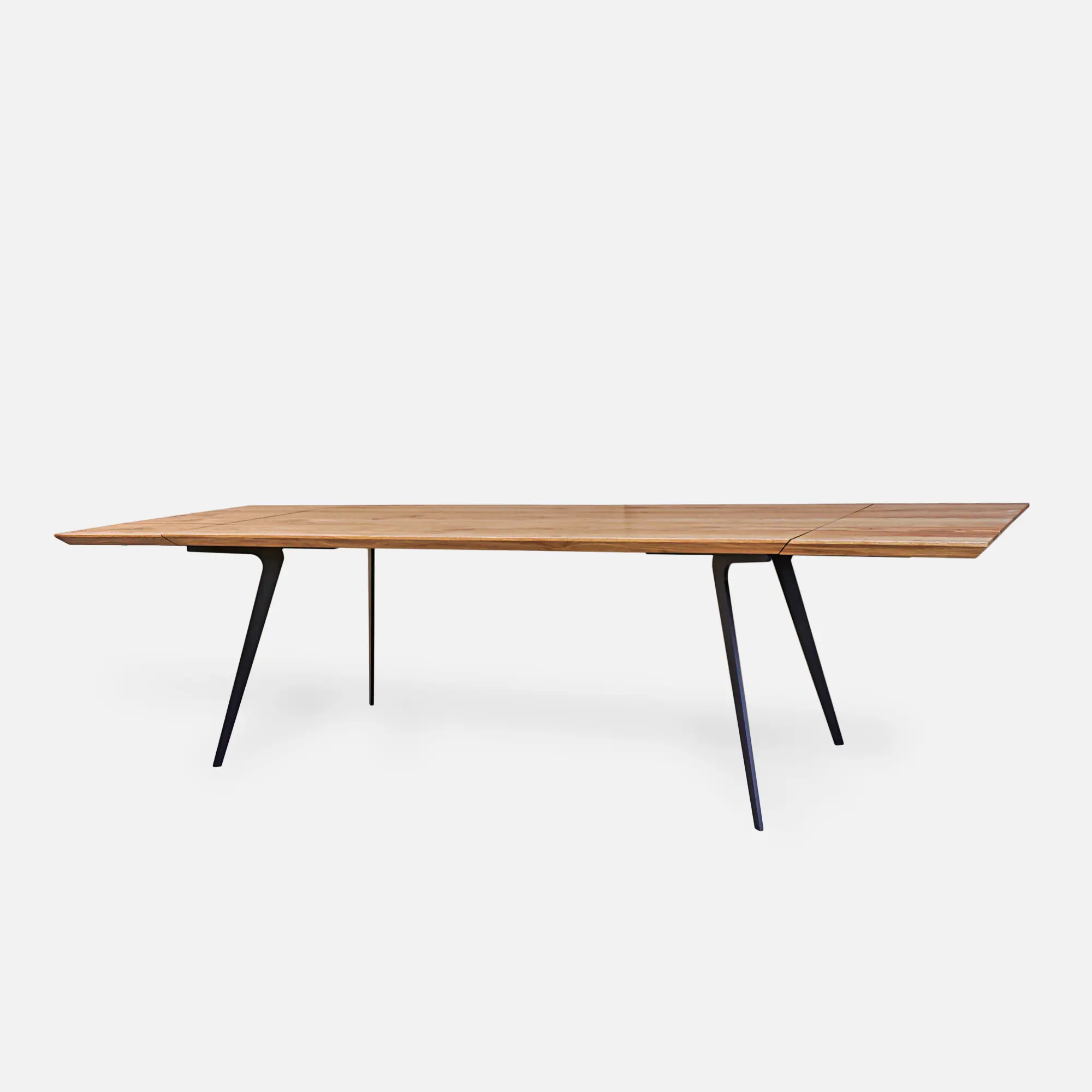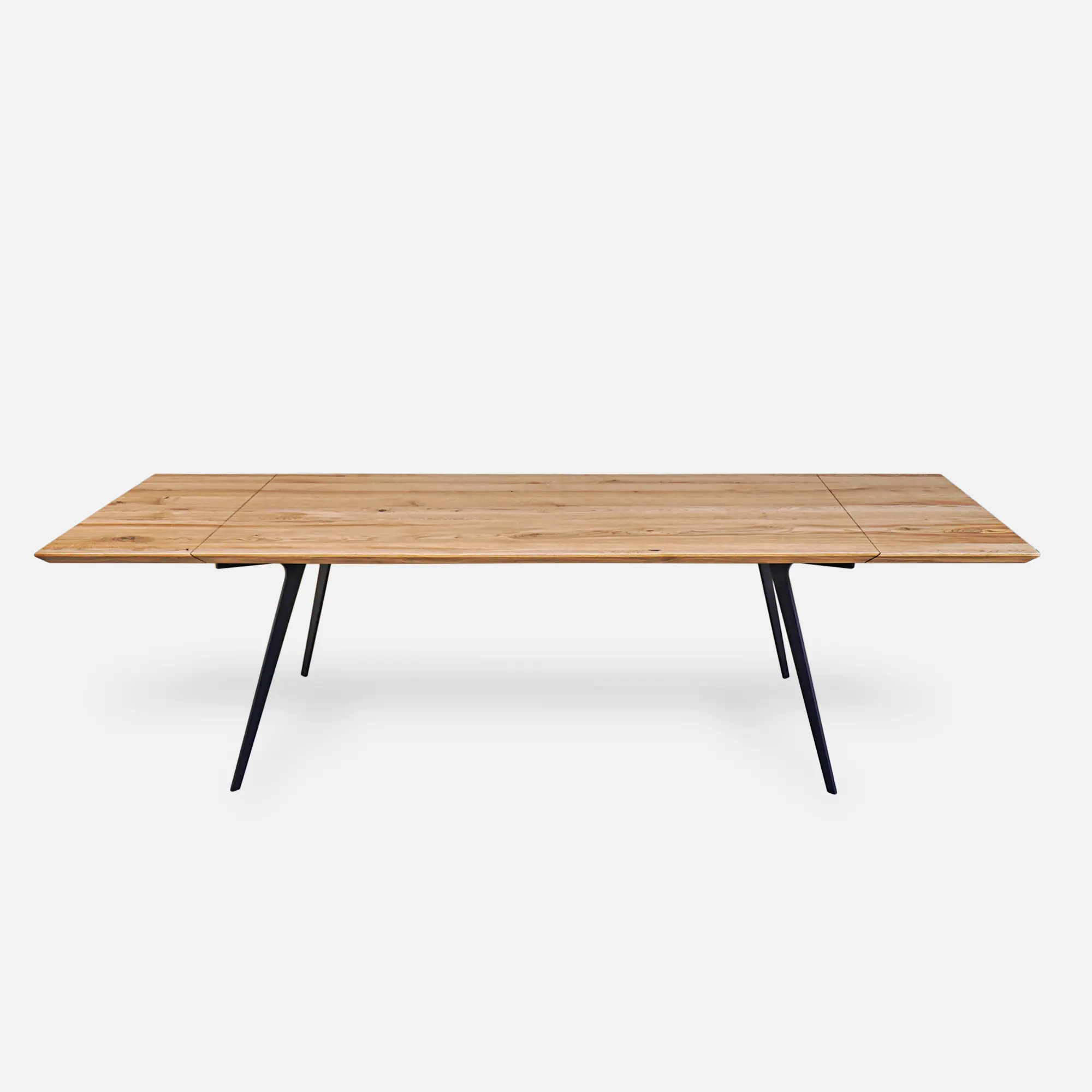 The slides for assembling the extensions are built into the table’s metal structure. The table top extensions, on the other hand, require separate storage. But you don’t have to worry about where and how you will store the extras! For orders of tables with extensions , we add a special box for storing the extensions free of charge. This preserves the form of the table and the extensions do not have a significant impact on the table structure, apart from the fitted guides for mounting the extensions. The wooden folding table is a nod to functionality, which plays an important role. Folding tables with side extensions ensure that the continuity of the grain is maintained. Therefore, even after adding an extension, the wood grain is consistent throughout the table top. Have a look at our entire category: solid wood tables and coffee tables, which will go perfectly with our tables!