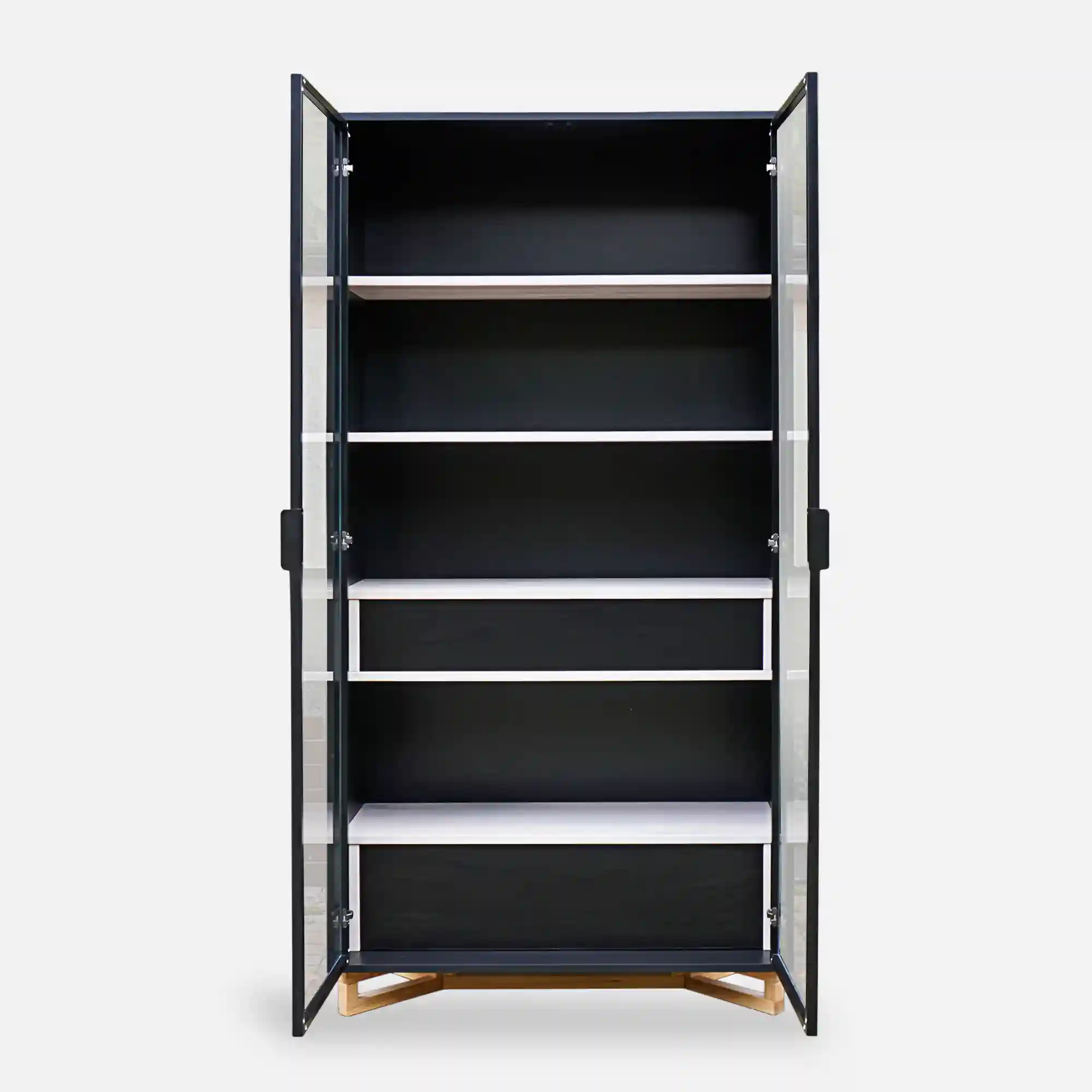 Glass cabinet of oak wood and laminated board to living room office NORD