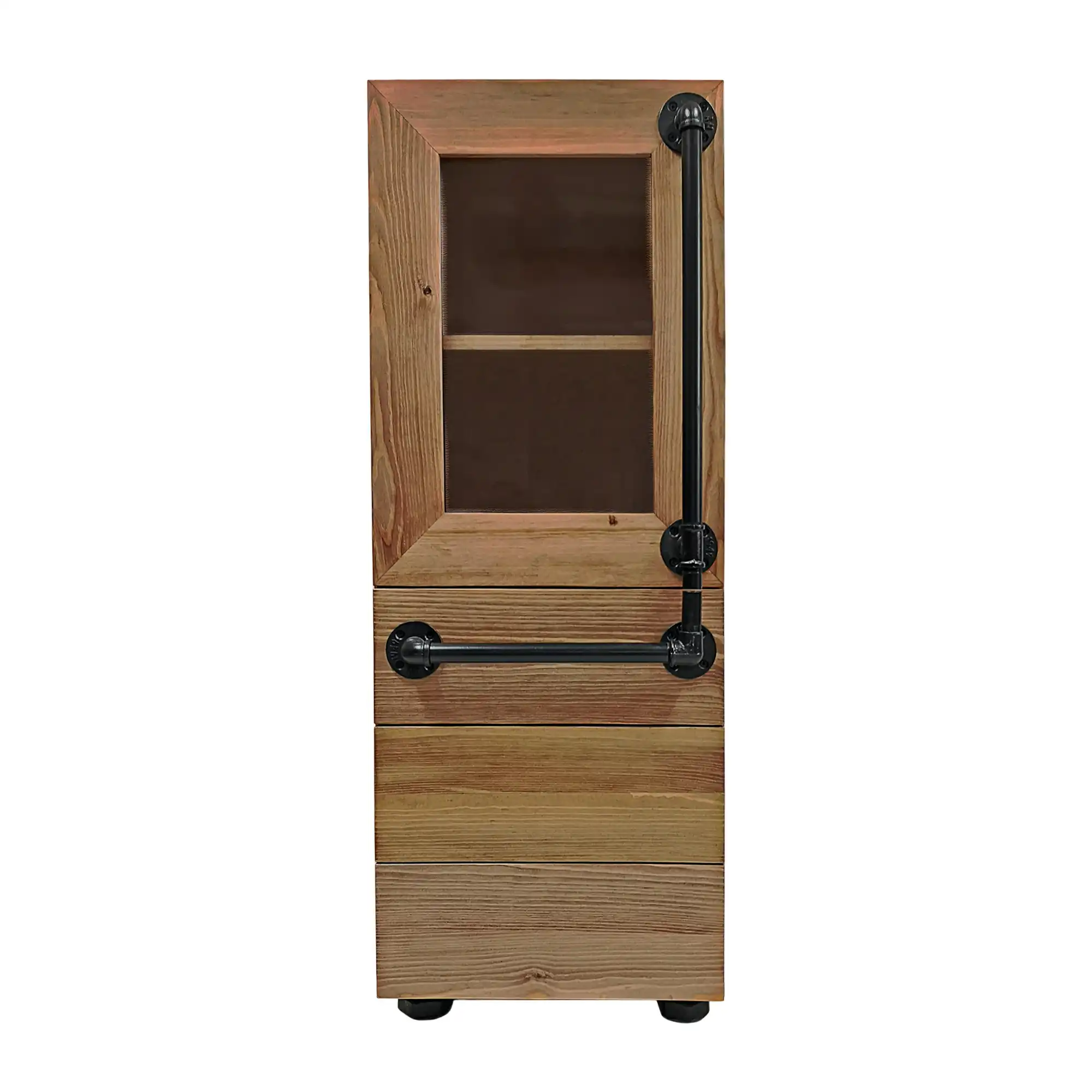 Industrial bookcase of solid wood DENAR is elegant proposal for every living room. Furniture is made by hand with attention to quality. Material is completely resistant to abrasions, scratches and cracks, which guarantees long life of product. Wooden bookcase has two cabinets with shelves and three drawers. Industrial bookcase of solid wood DENAR will be perfect for any interior.
