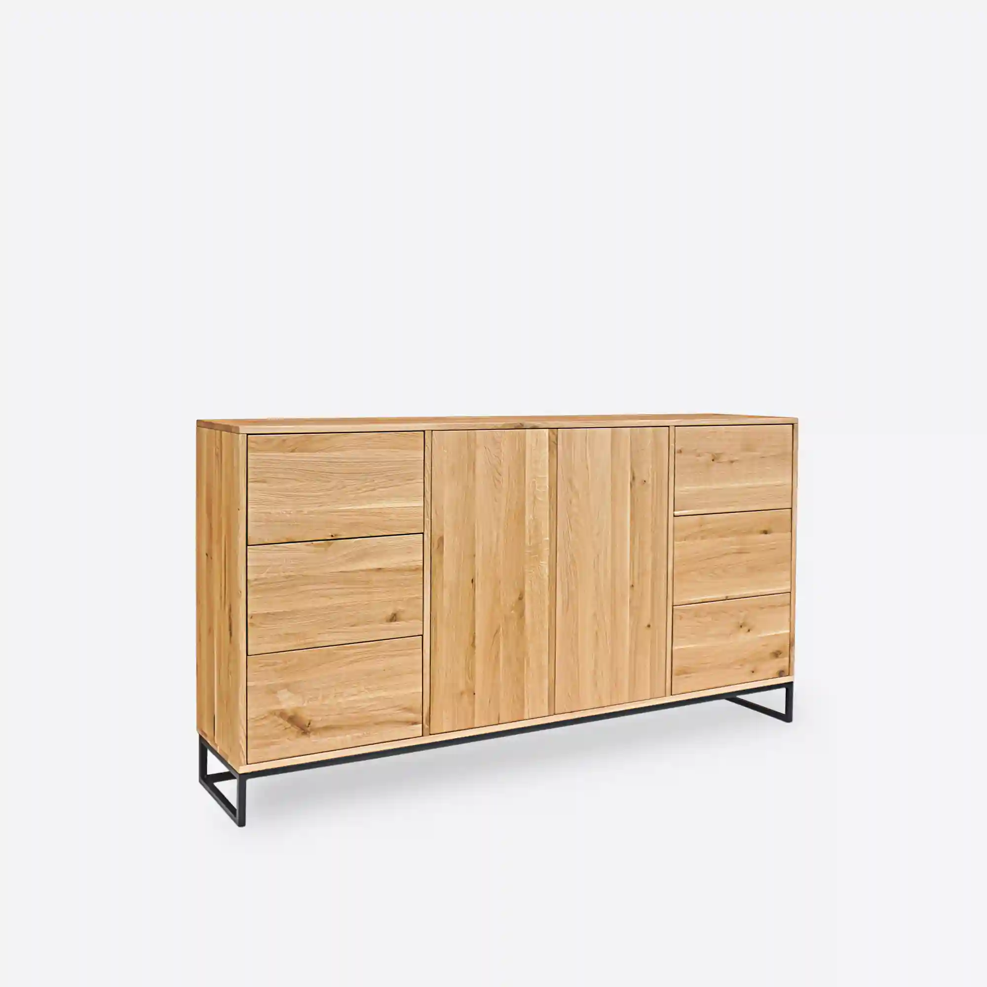 At RaWood, we design and manufacture custom-made oak furniture. The MERIS V chest of drawers can also be fully customised to suit your interior. We offer the option to change the dimensions, wood colour, surface finish and type of steel base. You can also choose a matt, oiled or varnished finish to perfectly match the furniture to your interior design.