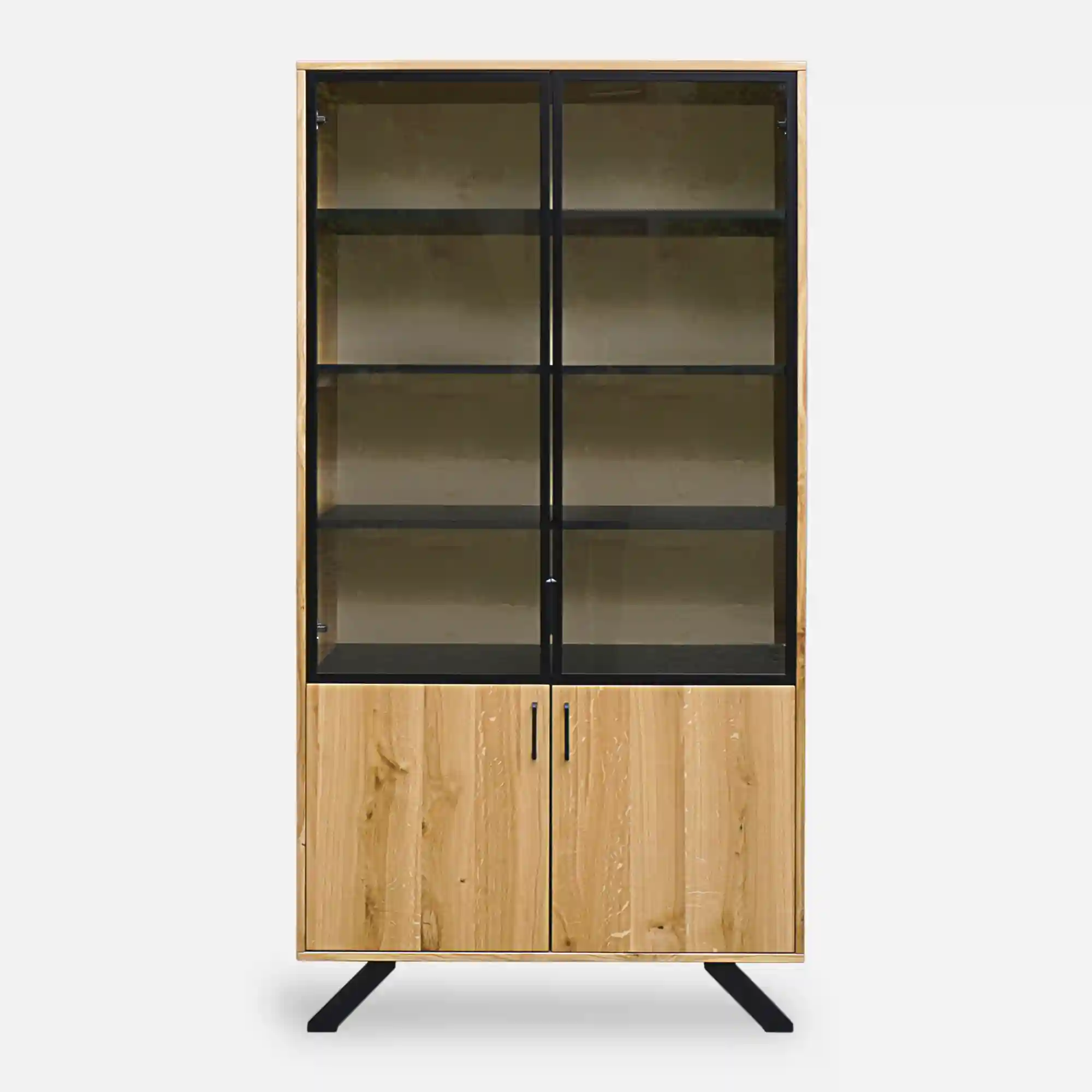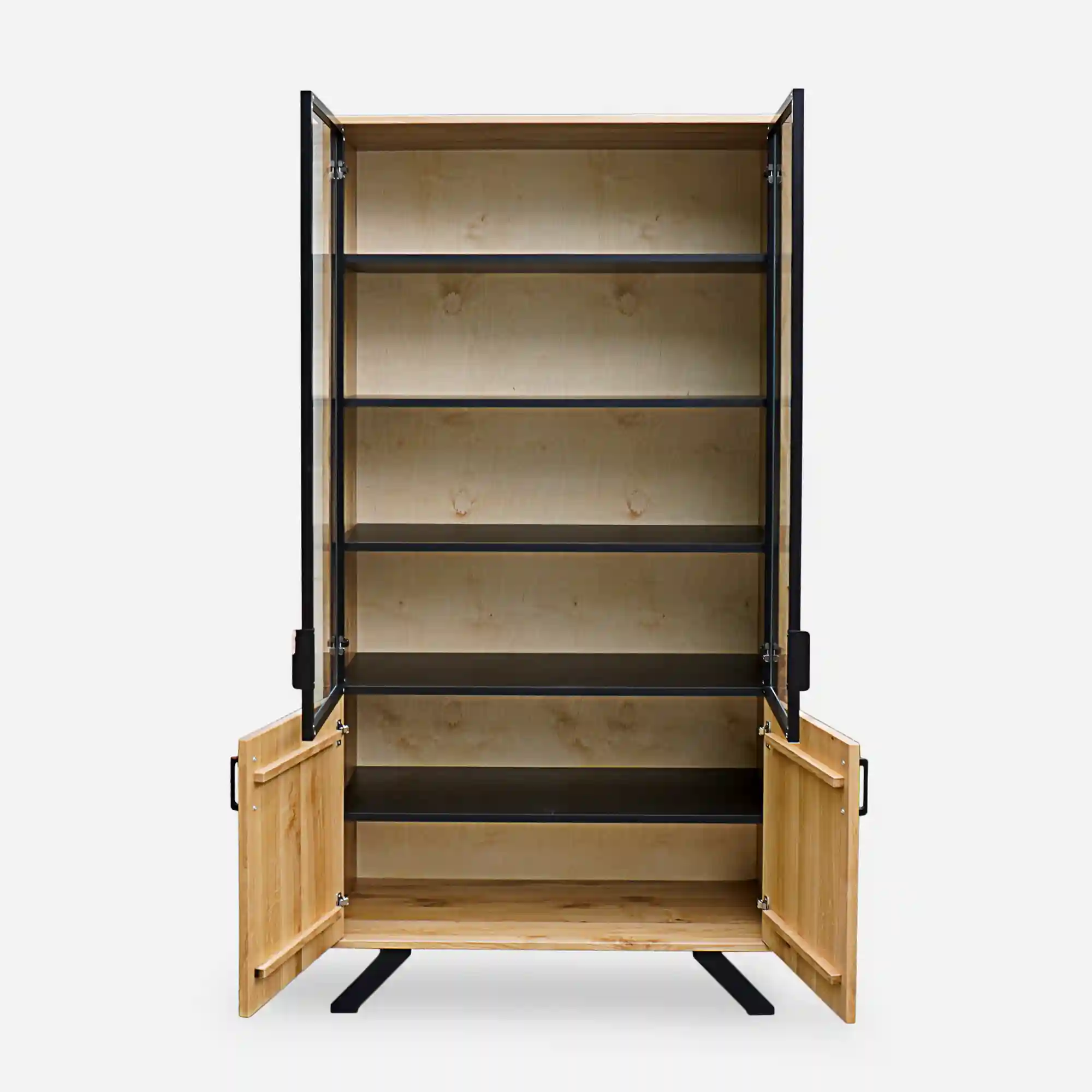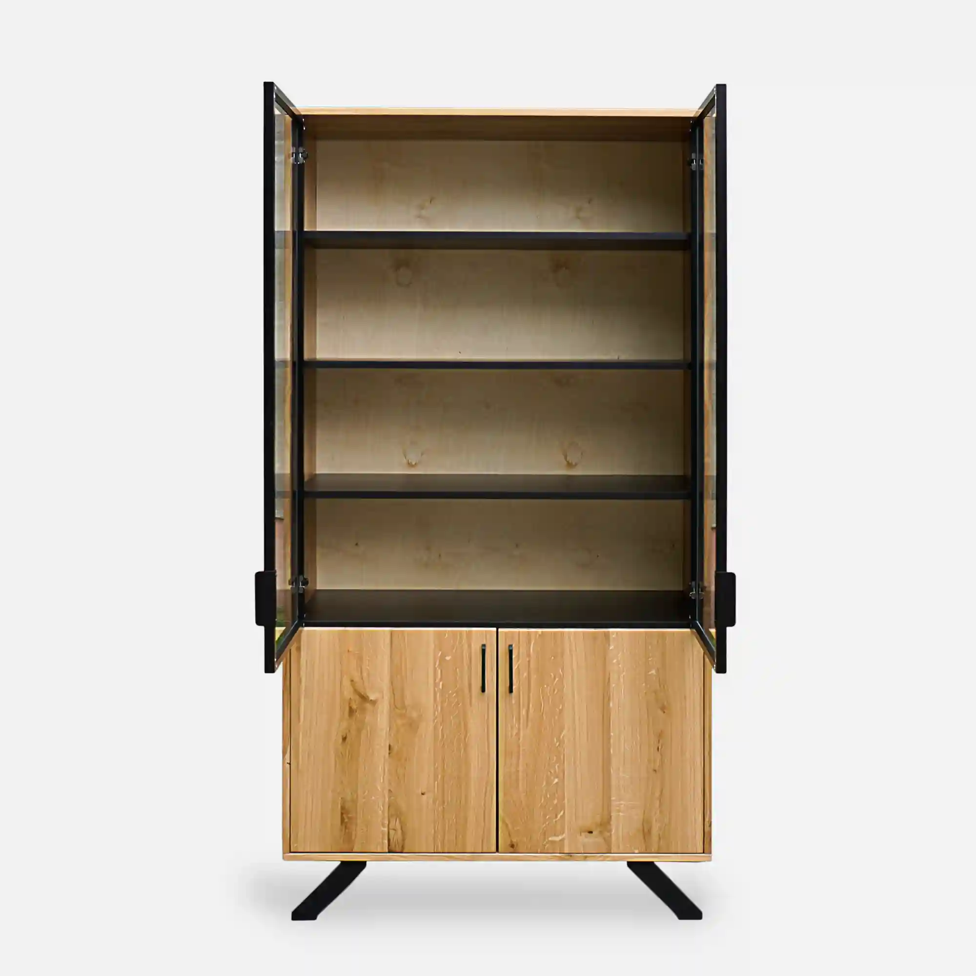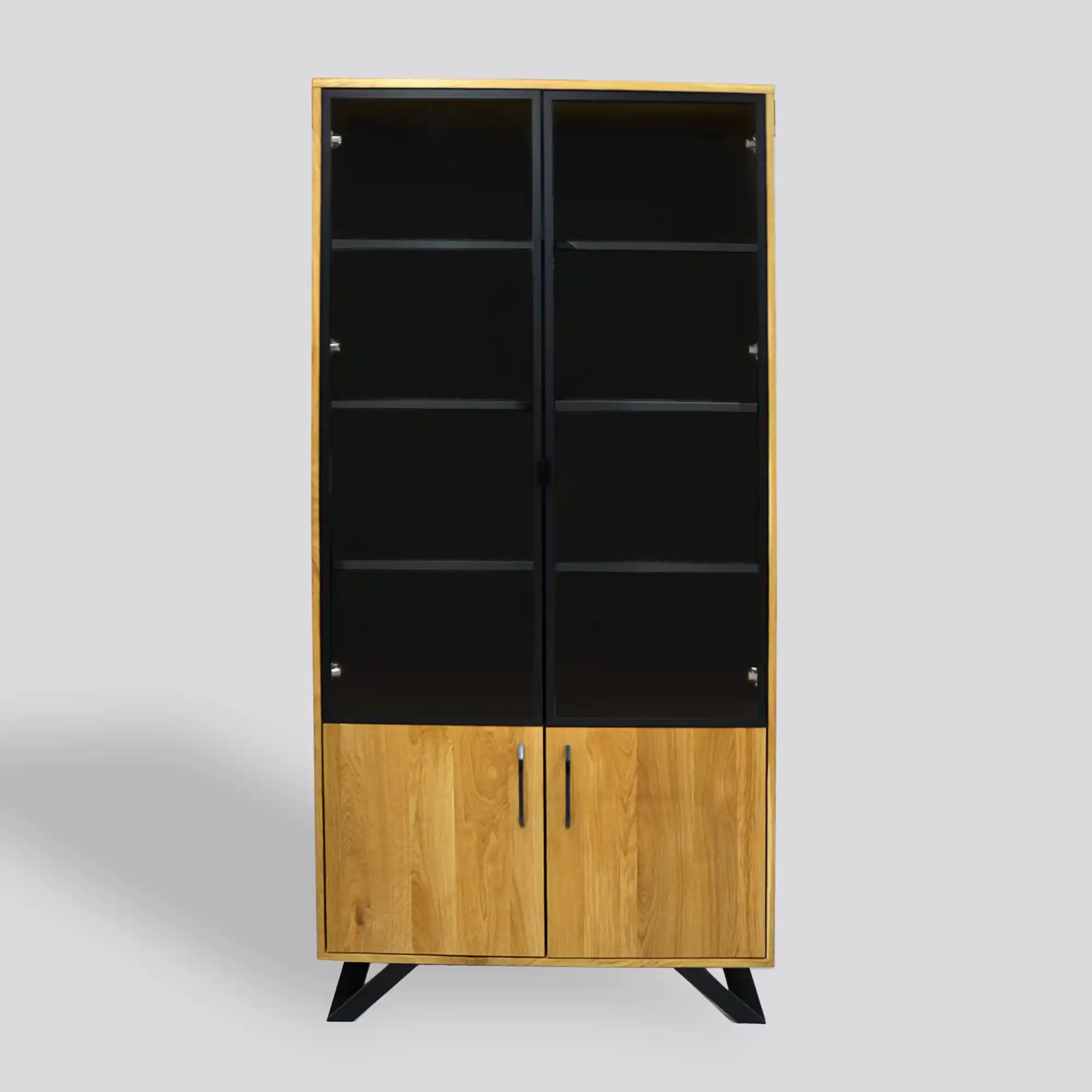 Recently, industrial style and loft style reign in the interiors. An industrial display case with glass fronts will allow you to store books, alcohol or family souvenirs. It is a functional piece of furniture because, in addition to aesthetic value, it can be used as a piece of furniture to store all necessary things. The industrial oak display case was made of the highest quality solid wood. In our offer we also have other loft sites and modern sites. JORGEN is a loft display case that you can put in the living room, dining room. kitchen, study, office or room. Loft sites are a good choice that will fit into many interiors.