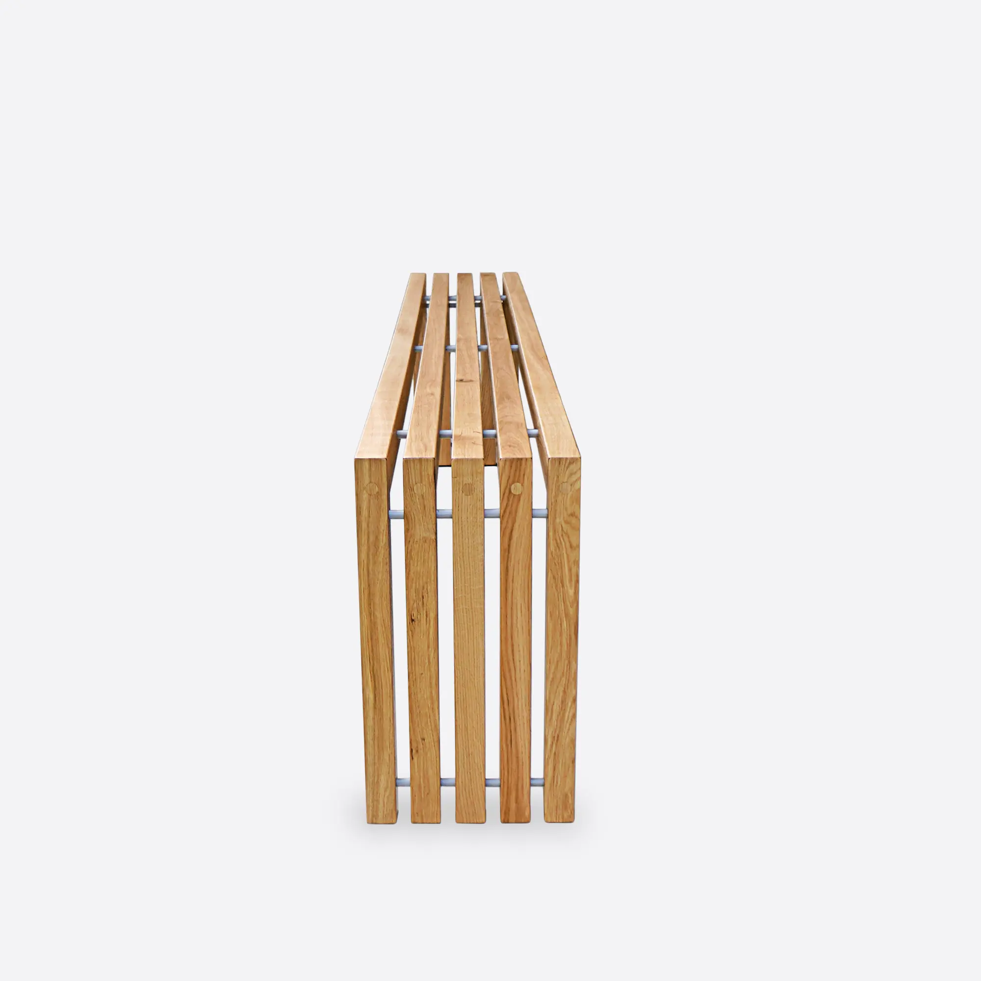 As a custom bench manufacturer, we work exclusively with premium solid oak. A solid oak bench offers natural structural stability, high resistance to daily use and a distinctive grain pattern. Each board has its own tone and structure, making every bench completely unique. Oak ages beautifully and develops character over time.