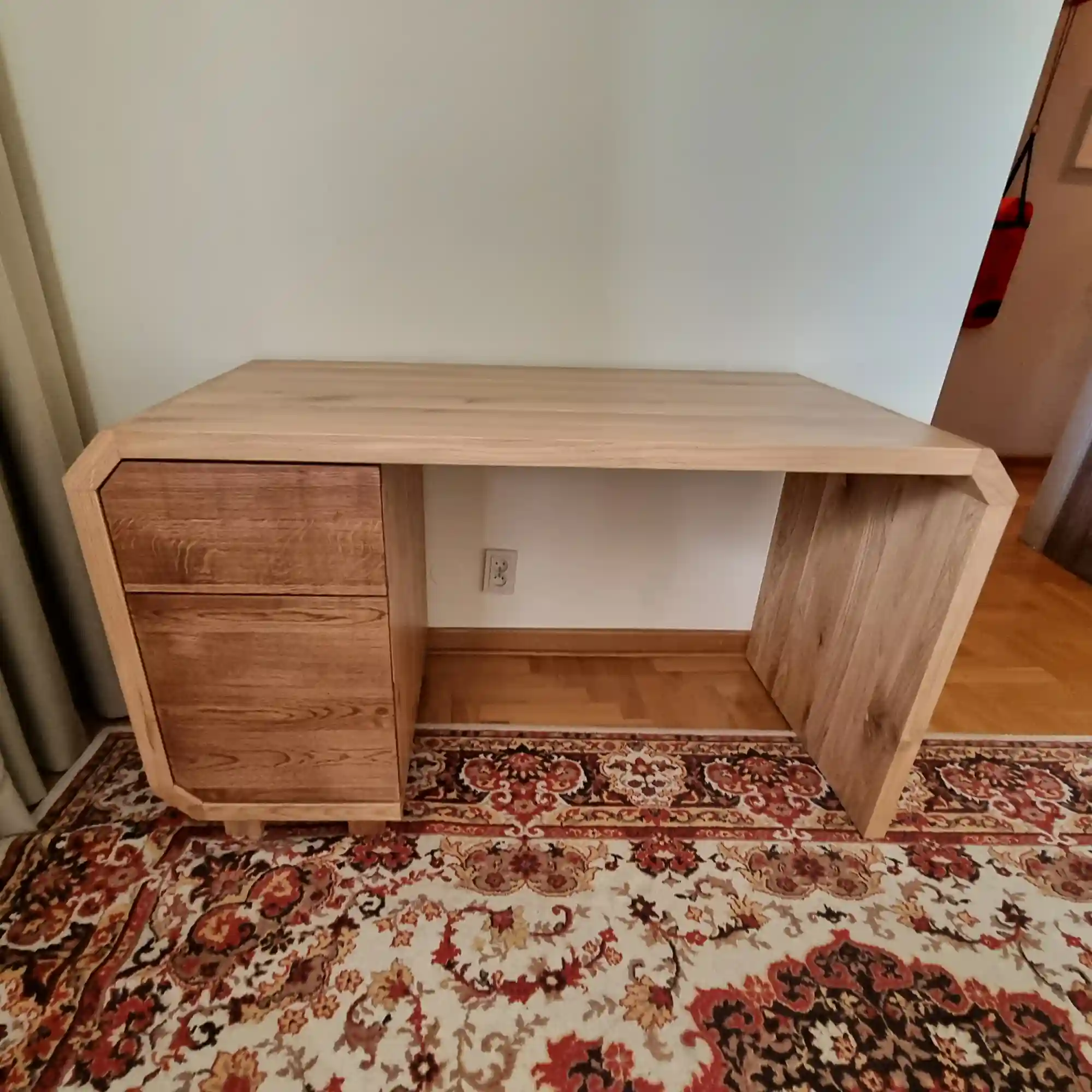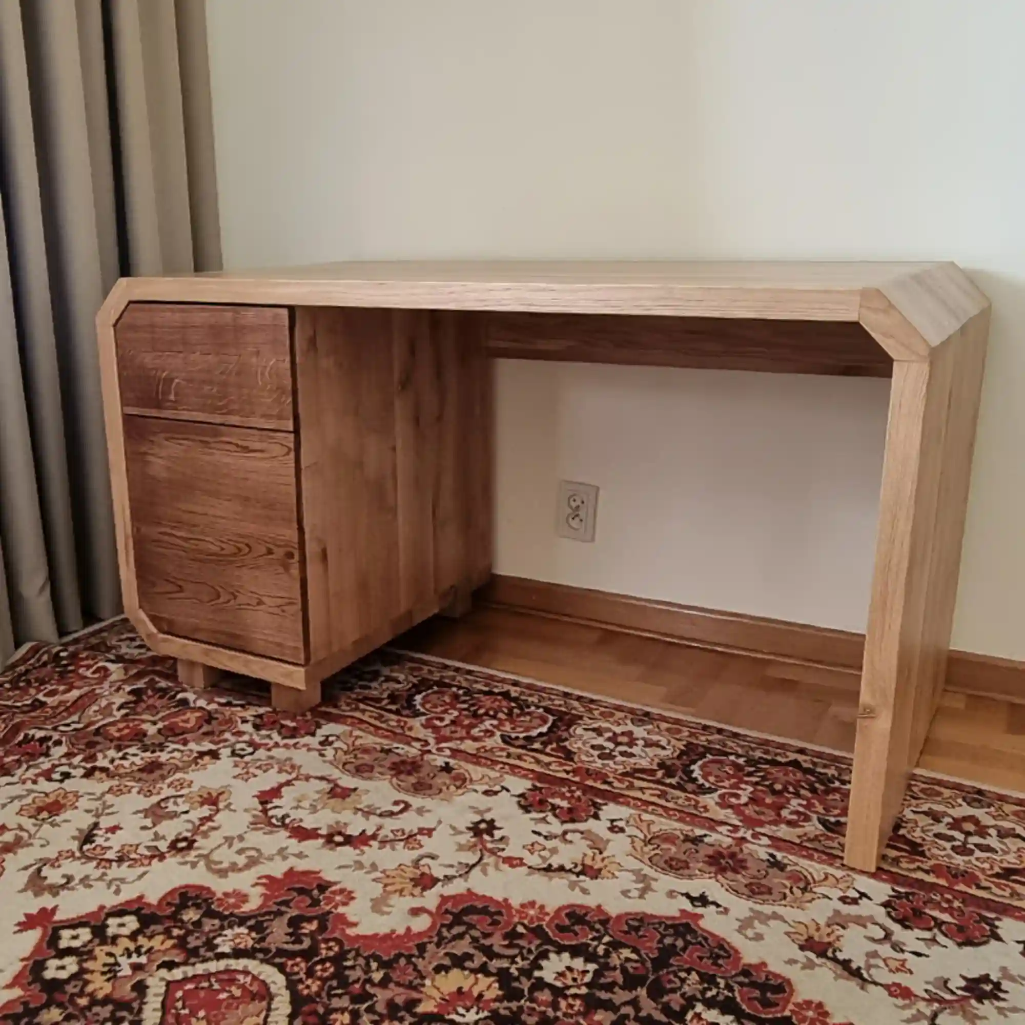 When choosing a desk type, there are several factors to consider. Depending on where we use it, the desk should provide a place to work, space for equipment or drawers or shelves for storage. For example, a desk for a child’s room or a study desk should be equipped with capacious drawers. Our oak desk with a container is a great proposition for people who value comfort and solidity of furniture. The massive construction guarantees the stability of the furniture. Check out our other oak desks made of oak wood. All wooden furniture is created by hand, so we can adapt it to your needs. Do you want to order a desk that will be perfect for you? Write to us via the contact form. You can change the size, number of drawers and shelves. Match the color of the desk to your interior and enjoy the furniture created for you! We provide full comfort by providing ready-made, complex furniture that does not require self-assembly.