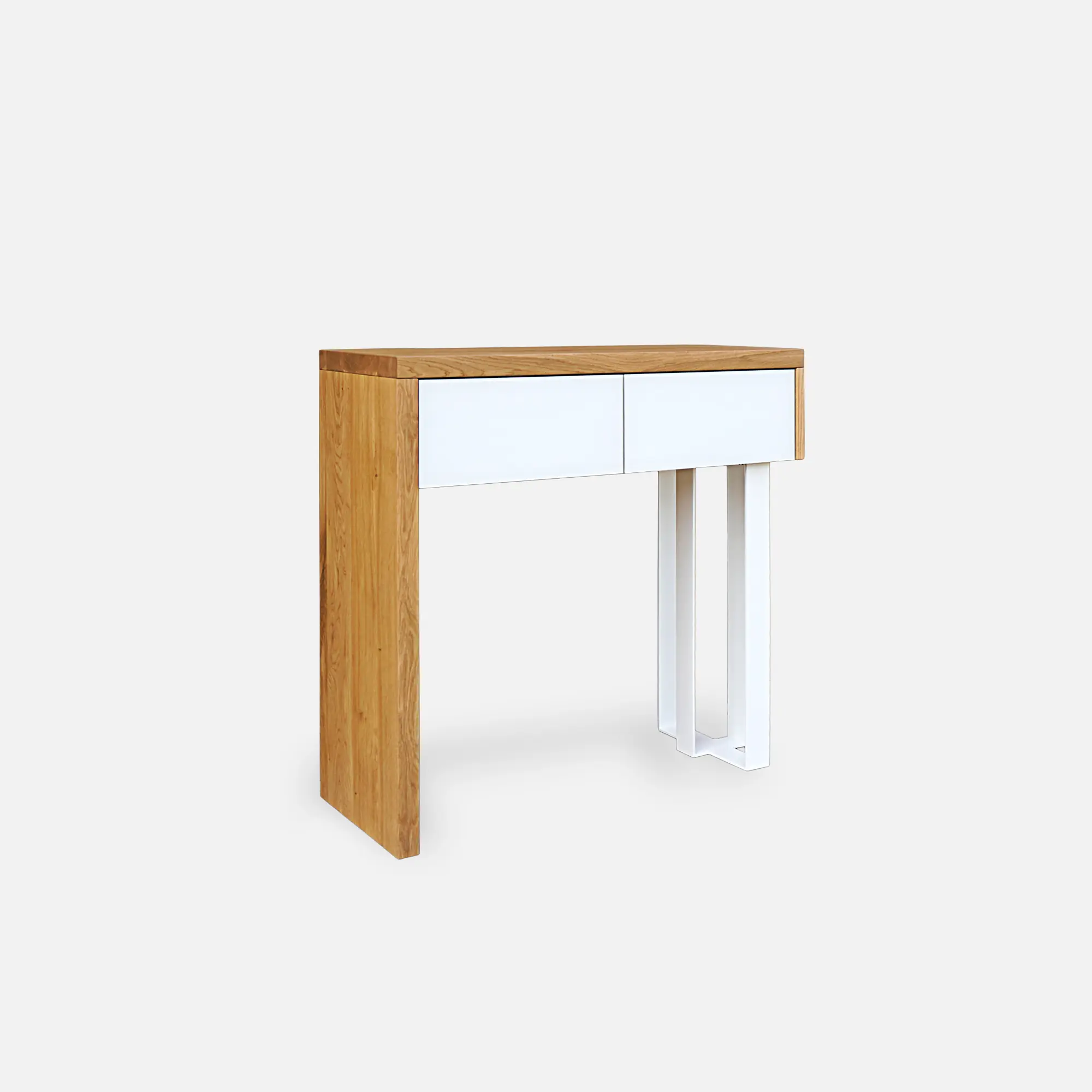 In a narrow hallway, custom-made consoles are a convenient solution. If you want the hallway console to be tailored to your needs, write to us via the ‘Customize console’ form. All our furniture, including hallway helpers, is handmade, thanks to which as a furniture manufacturer we can personalize each order. We create furniture tailored to any interior design – from Scandinavian to loft. Depending on what style dominates in your home, you can choose the color of wood or steel to match the rest of the interior. Custom-made consoles are individual furniture tailored to your needs. Bet on hallway consoles straight from the manufacturer!
