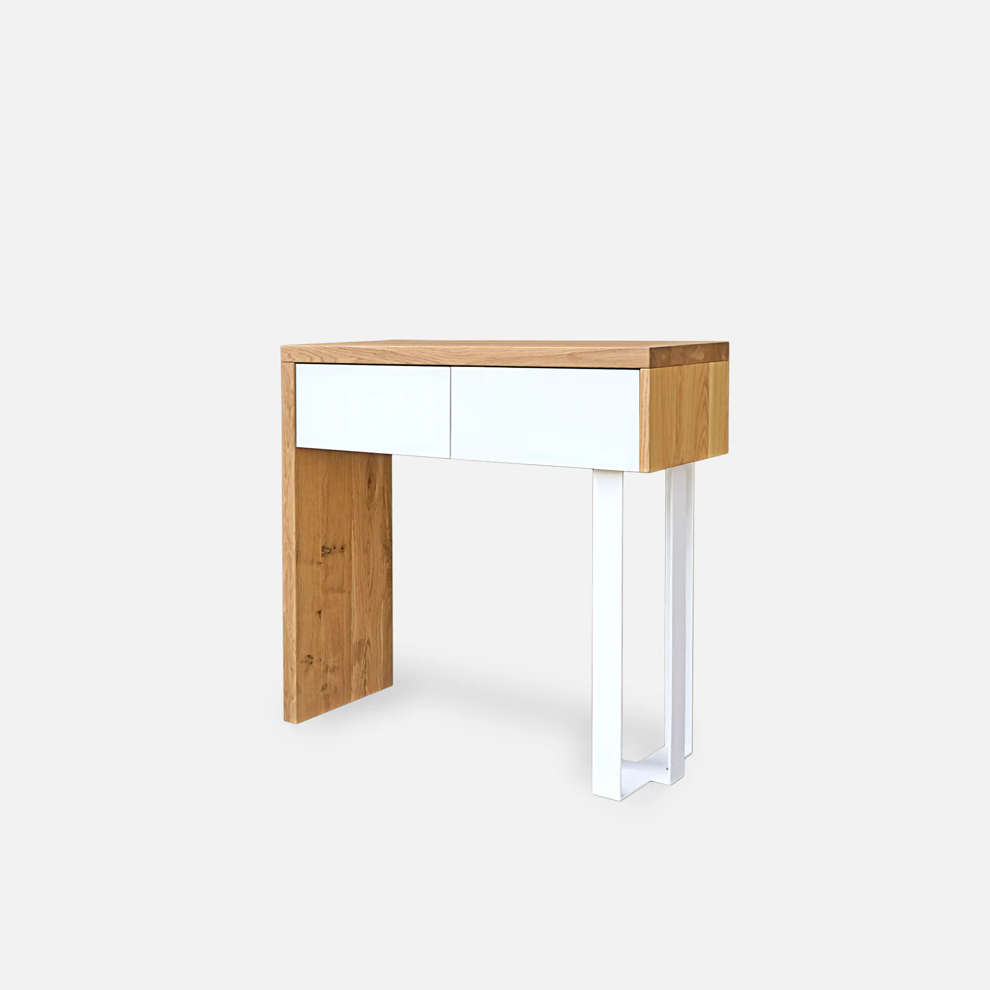 The console will serve not only to store small items, but also perform a decorative function in the hallway. Stylish hallway consoles on metal legs or consoles in the classic version made entirely of wood – in our offer you will find various types of consoles suitable for any style of interior. For the Scandinavian interior design, the DAVOS console made entirely of solid oak wood will be great. The KING model is a console for the hallway in loft or industrial style. This piece of furniture will work in a narrow room, but on the console you can easily set, for example, photo frames or a decorative vase. Hallway consoles can also be used as small dressing tables in the bedroom. The CARIN model can be used as a dressing table, equipped with convenient drawers for storing small items or cosmetics.