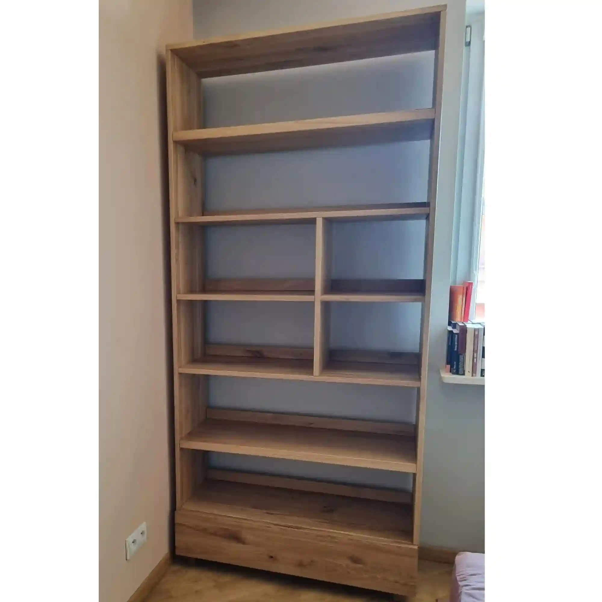 The DAVOS oak bookcase will perfectly fit into the arrangement of the living room, living room or office. The bookcase is made entirely of solid oak wood. A big advantage is the ability to choose the color from a wide range of colors. The designer bookcase has a lot of shelves, thanks to which it will provide space for a lot of books, photos and other decorations. In addition, the wooden bookcase at the bottom has an extremely capacious drawer. A modern bookcase is a massive and solid piece of furniture that will accommodate many everyday things while guaranteeing the safety of their storage. Oak bookcase will certainly make any interior gain a stylish design. Its universal appearance will make it fit in every home.