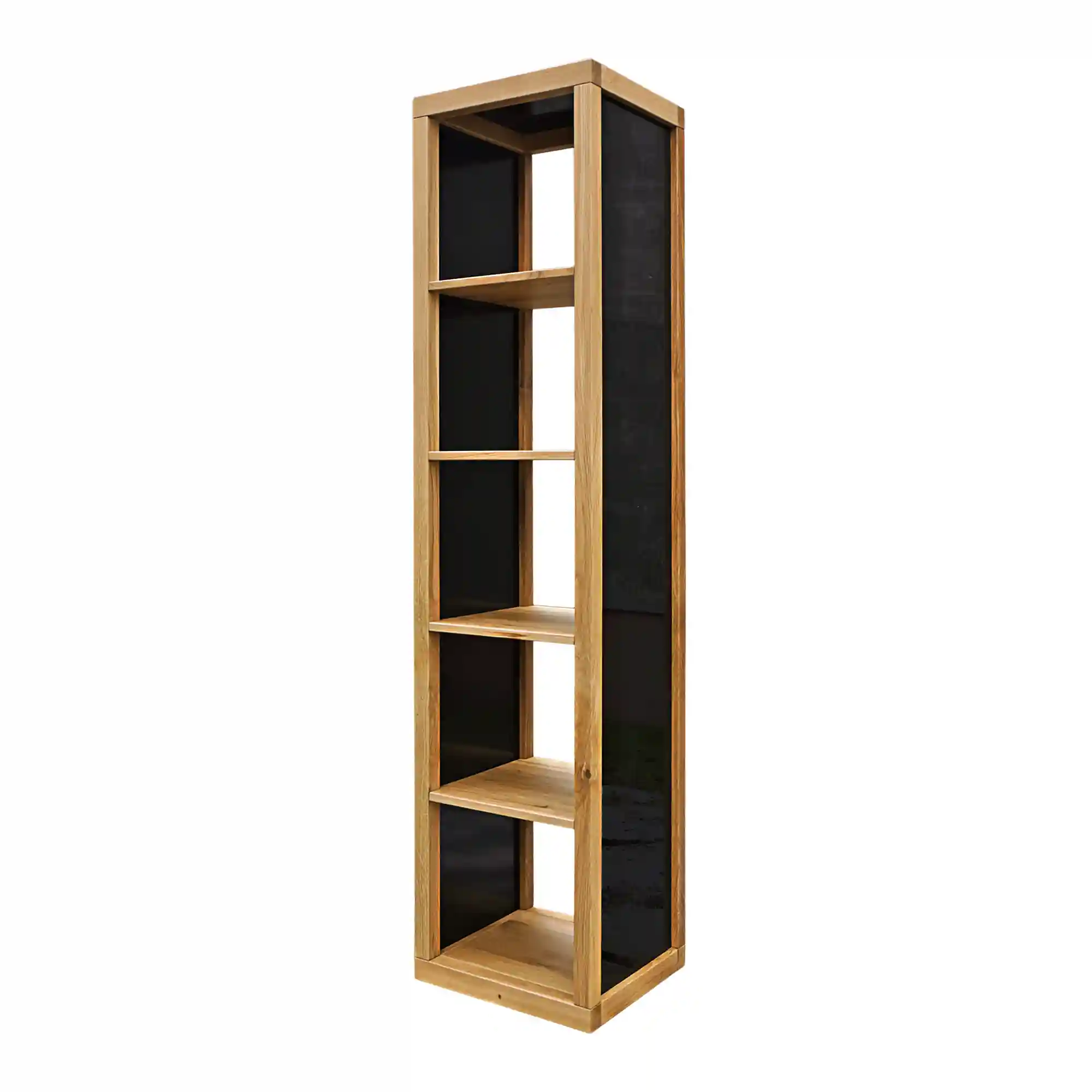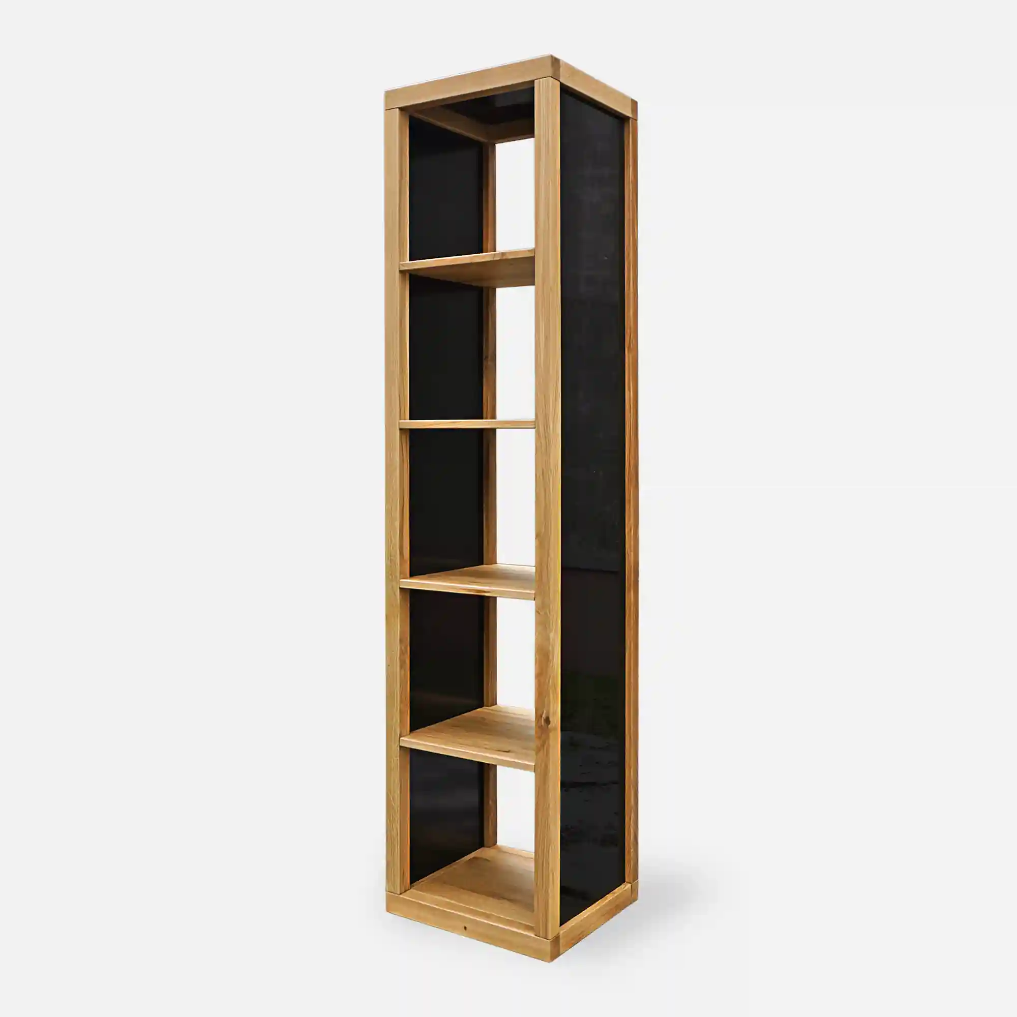 This elegant oak post with MOCCA shelves is a combination of the natural beauty of wood with a modern accent in the form of black glass side panels. Its universal design makes it fit into various interior styles, from modern to classic. Oak furniture is a combination of elegance and functionality. Made of high-quality solid oak wood, this furniture is durable and has unique graining. Black glass side panels give it a modern, luxurious look. The pole design is open, backless, which adds lightness and allows easy access to stored items from both sides. The shelves are spacious, perfect for storing books, decorations or other everyday items. The post will work perfectly in the living room as a bookcase, in the office for storing documents, and in the dining room for tableware and decorations. The possibility of personalization includes adjusting the size of the furniture, the number and height of shelves and choosing a variant made entirely of oak wood. The MOCCA oak post is an ideal solution for people who value elegant appearance and solid construction, which will add character to any interior.