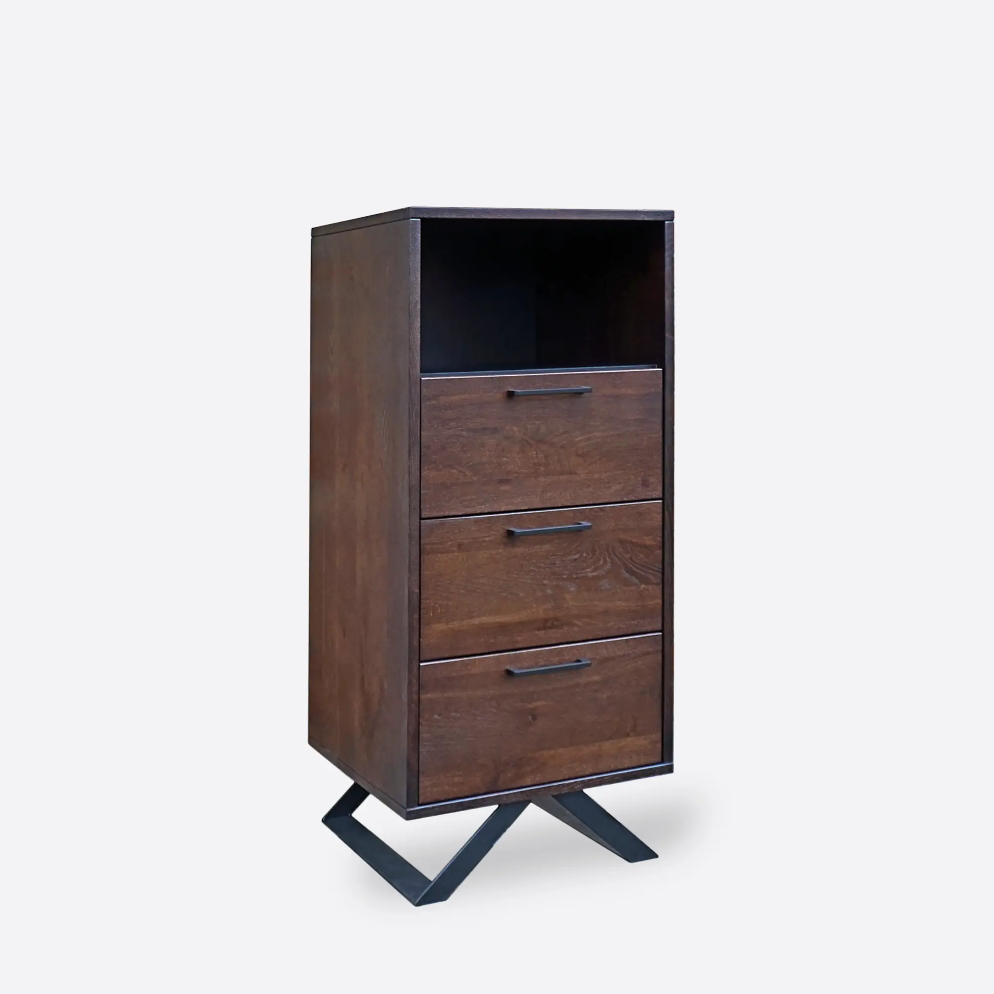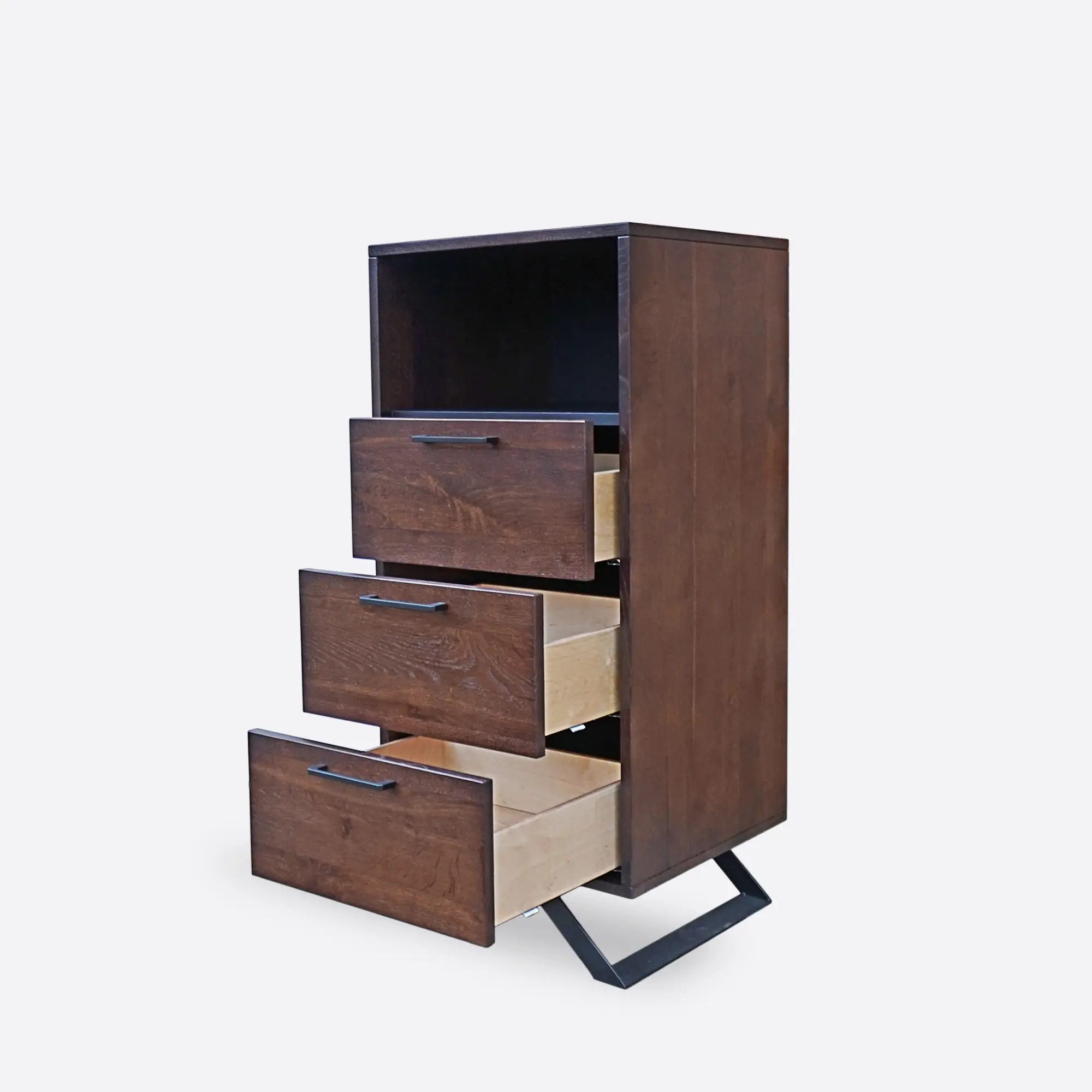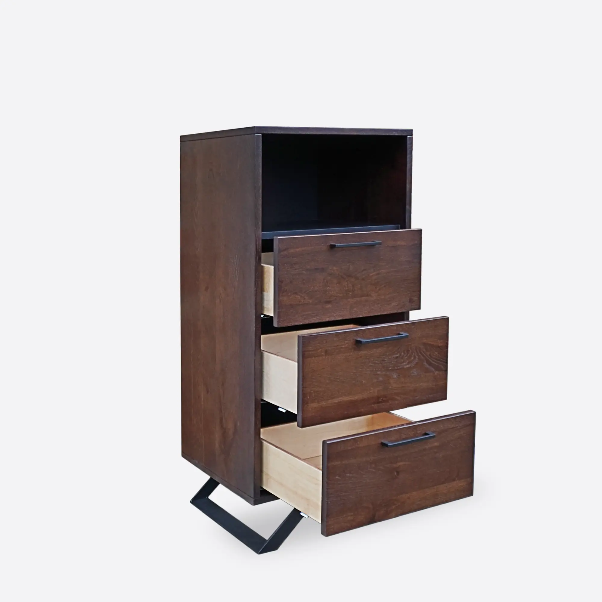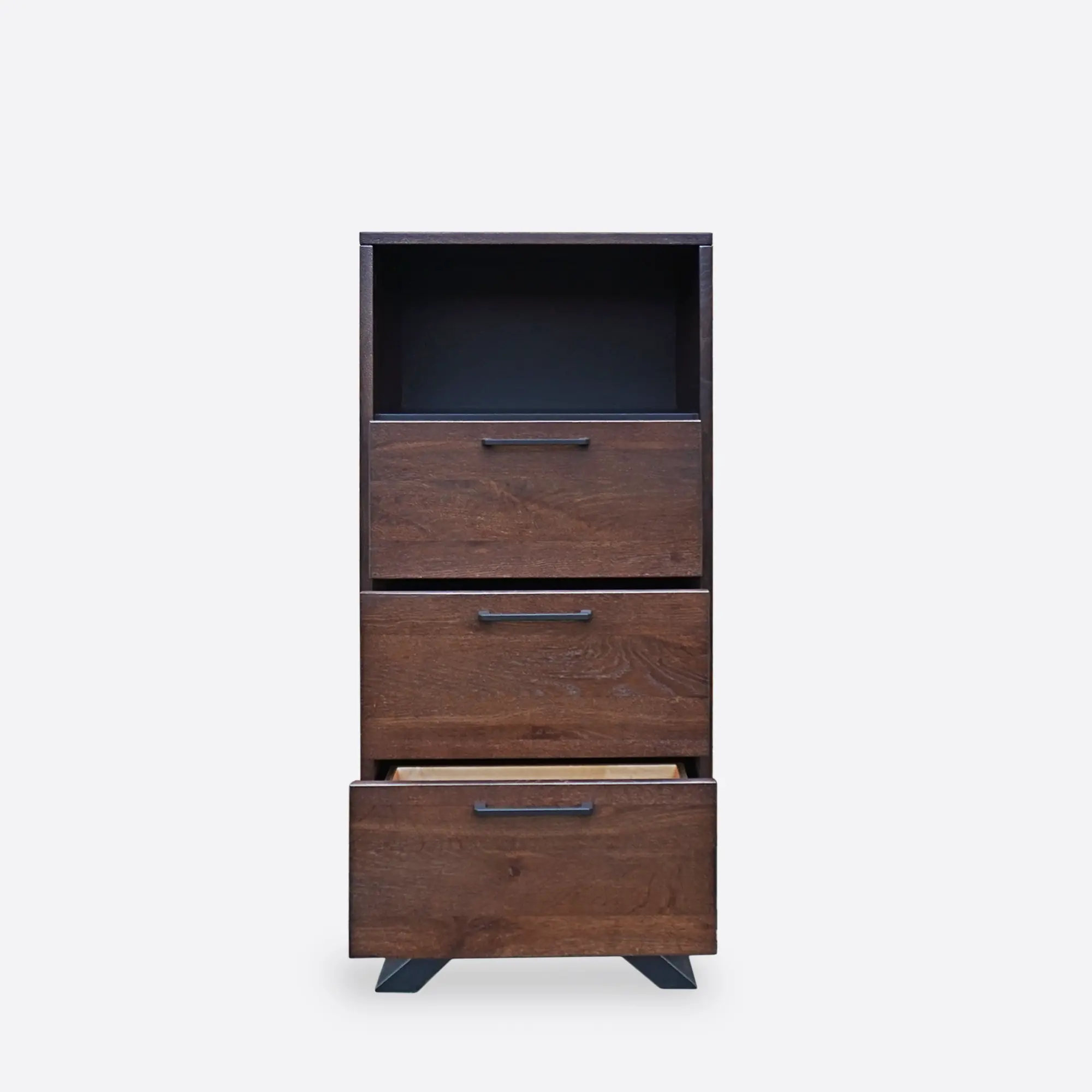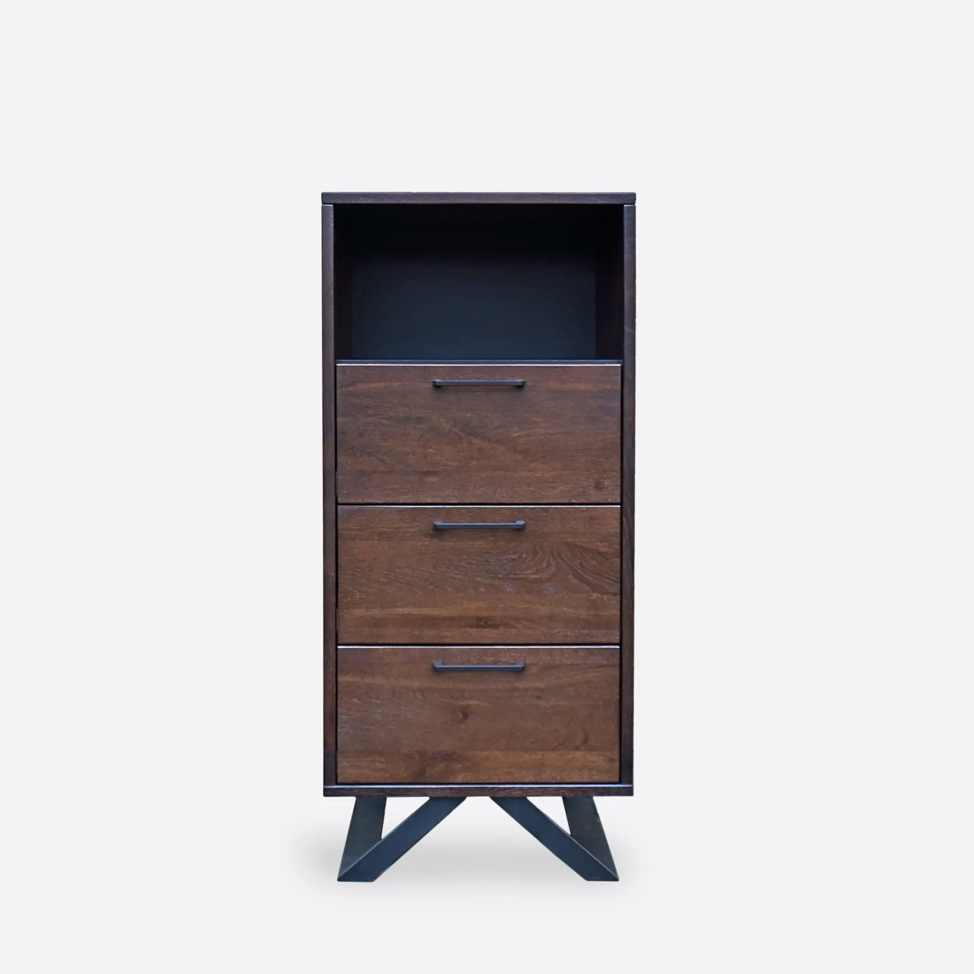 - 3 drawers with metal handles