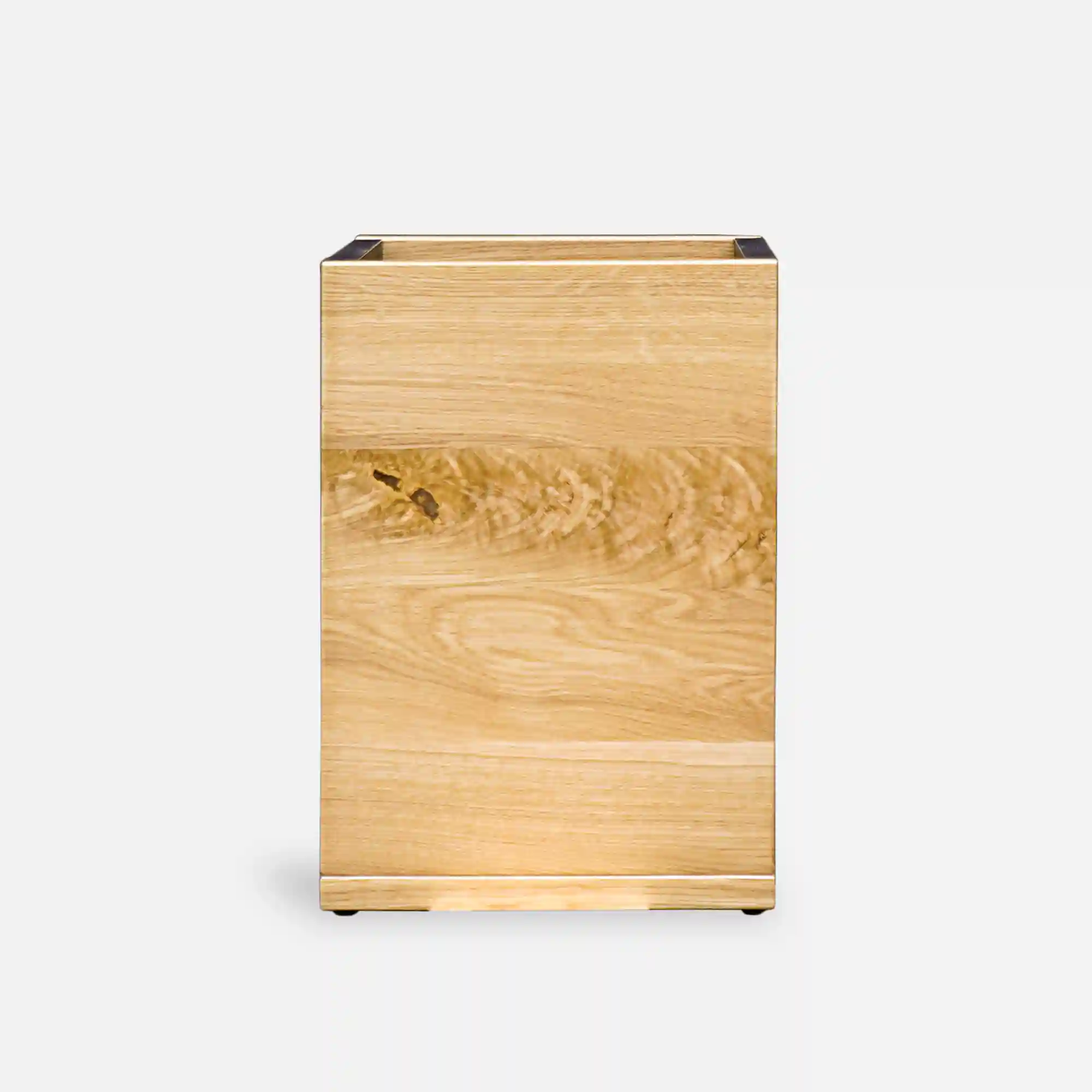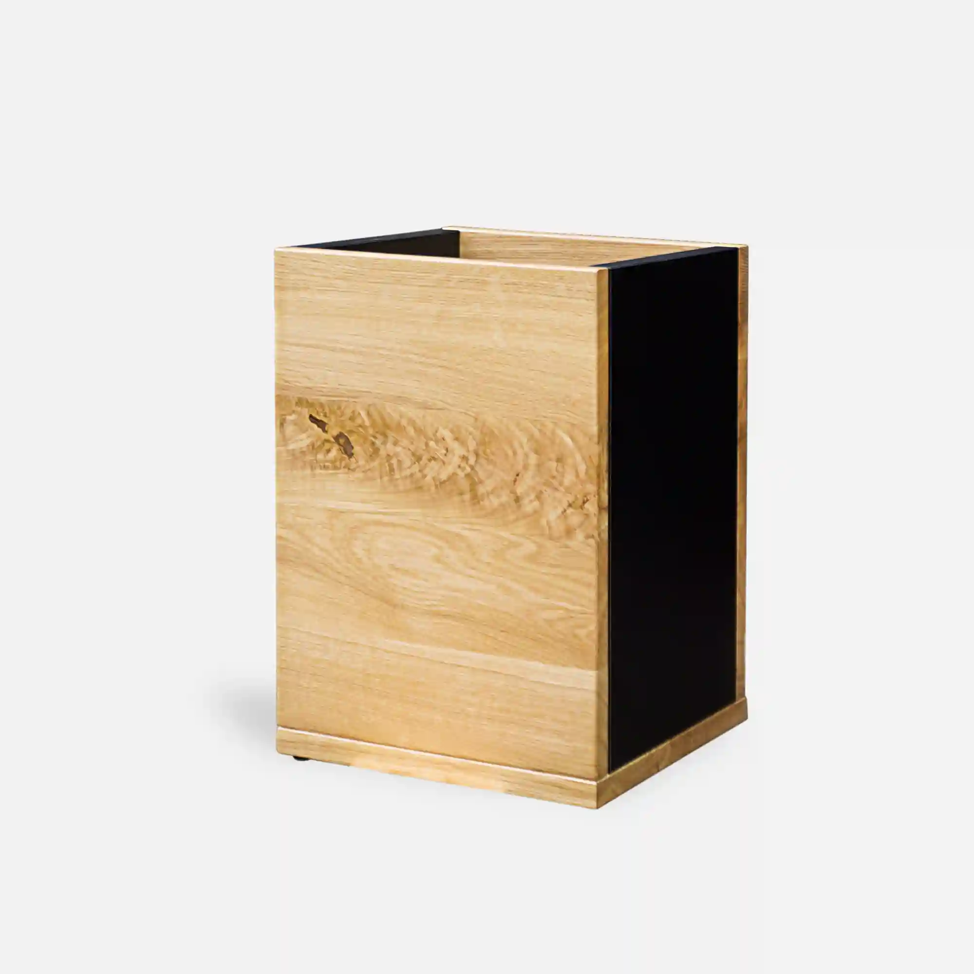 An oak basket for the office is not only a practical piece of equipment, but also an elegant addition that adds character and style to the interior. The wooden basket – made of solid oak and black laminated board – is not only durable, but also beautifully finished. Wood and its structure add a natural, warm charm to the interior. Its simple, minimalist design makes it fit perfectly into various office arrangements. Thanks to its solid construction and durable material, the oak basket not only looks beautiful, but also fulfills its function perfectly, providing a practical solution for keeping order in the office. By choosing a wooden basket, you are also choosing an ecological solution, because wood is a natural, renewable raw material. The oak surface is easy to keep clean, which makes it easier to care for and keep the basket in perfect condition for many years. The oak office basket can also be adapted to a specific office style – from classic to modern, making it a harmonious element of the room’s decor. Overall, an oak office basket adds elegance and character to any office interior. Order a wooden basket and check out our offer of oak accessories.