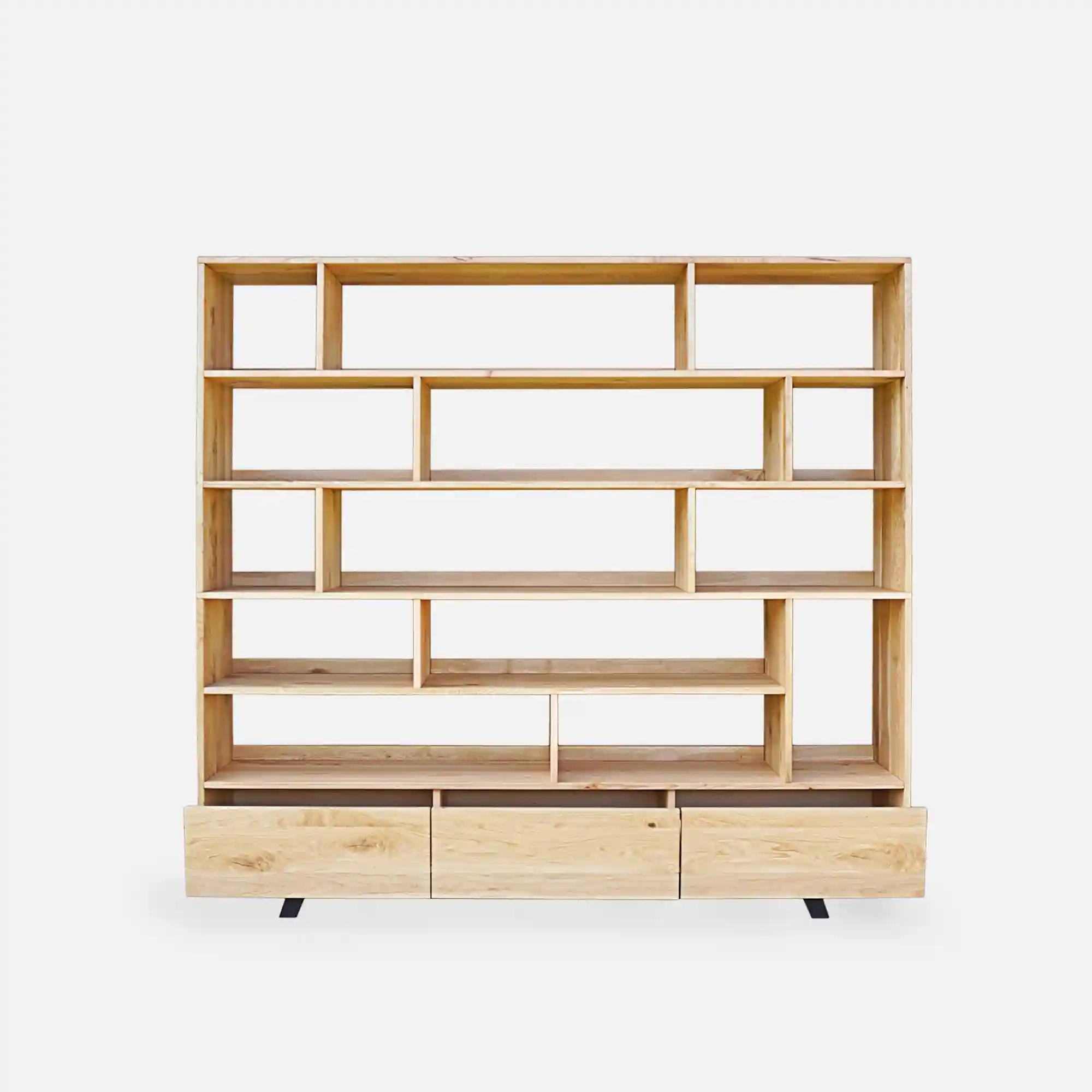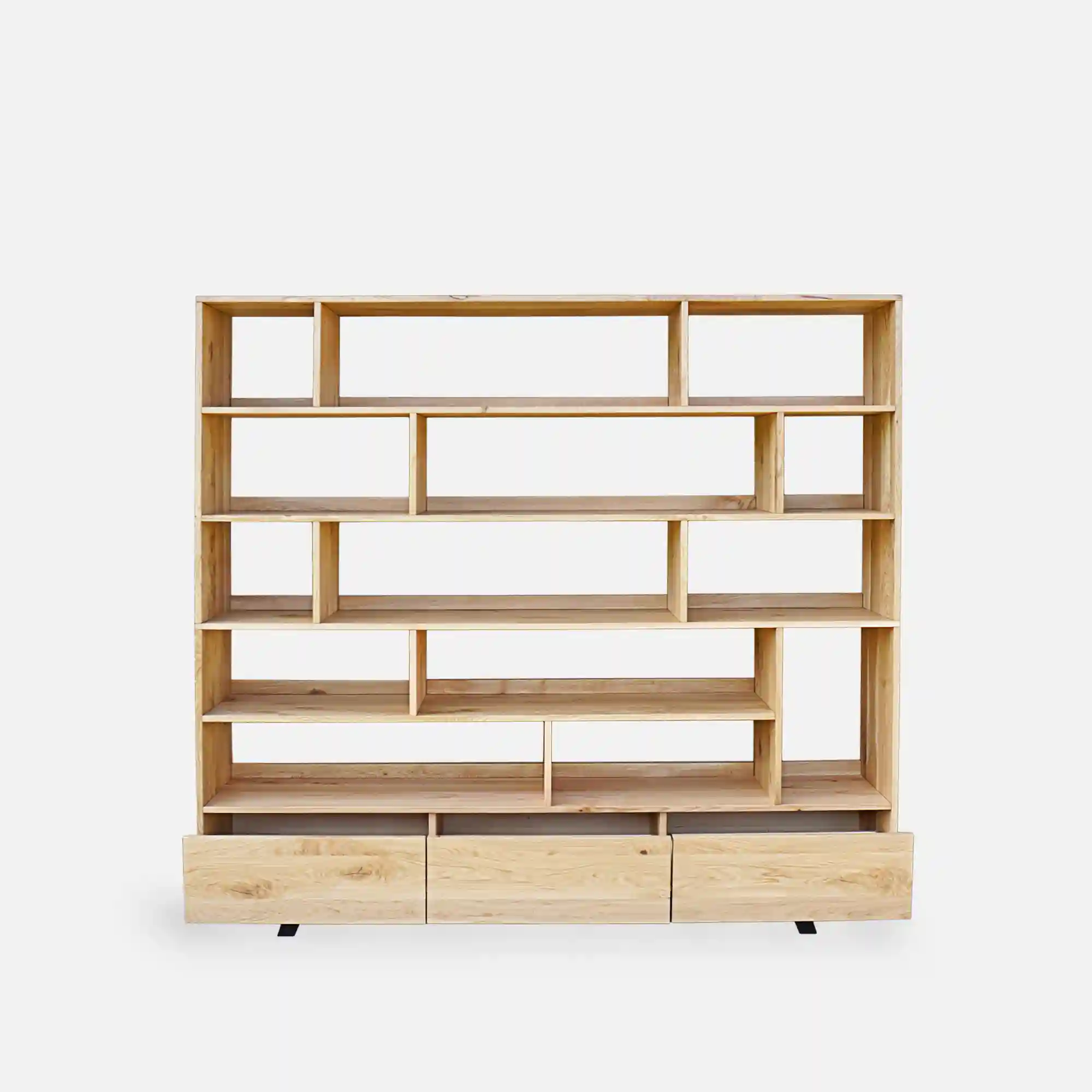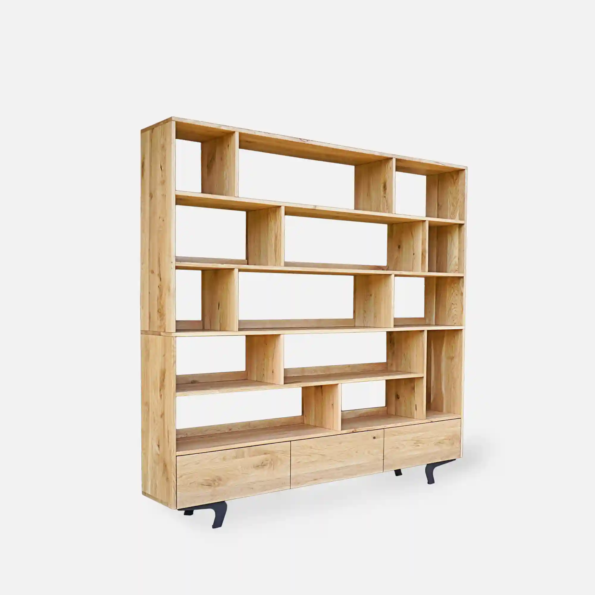 Solid oak is one of the most durable European hardwoods. A solid oak bookcase offers exceptional load-bearing capacity, structural integrity and resistance to everyday wear. Each board features unique grain patterns and tonal variation, making every bookcase visually distinctive.