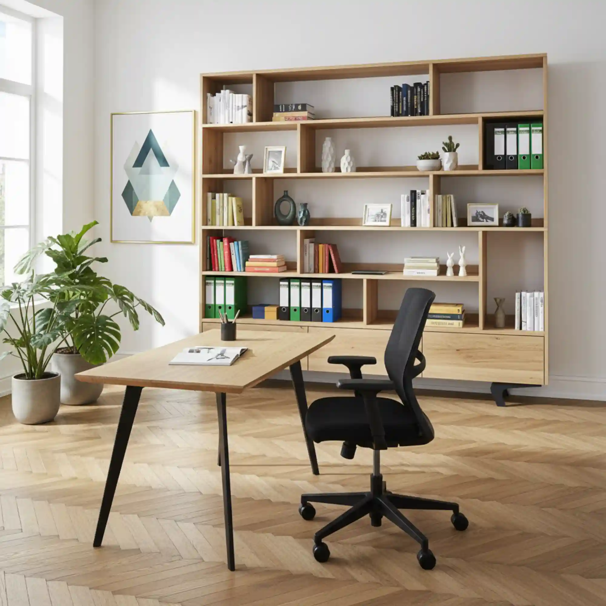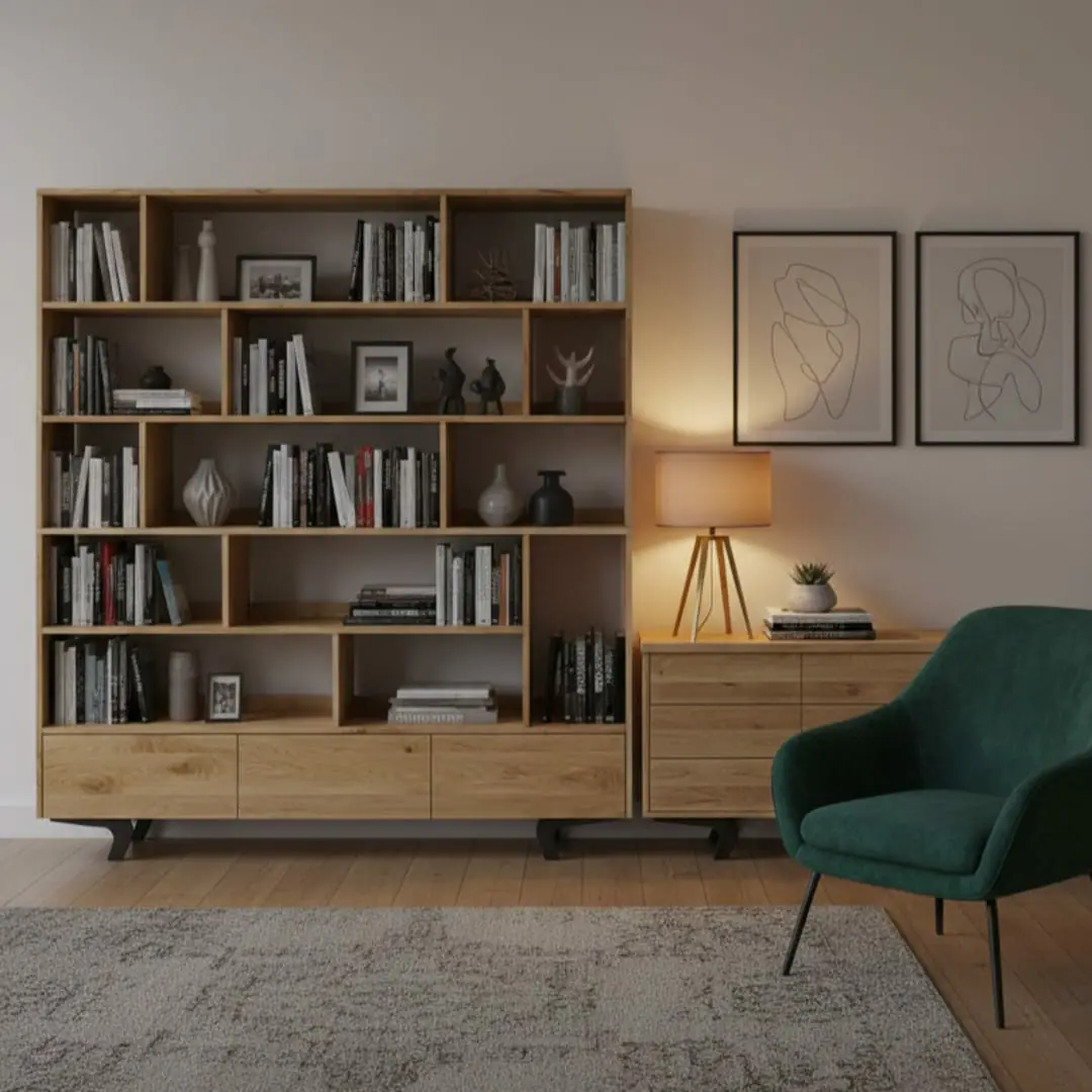 In a home library, a solid oak bookcase often becomes the architectural focal point of the room. In living spaces, it balances storage and decorative display. In offices, reinforced construction accommodates heavy binders and documentation.