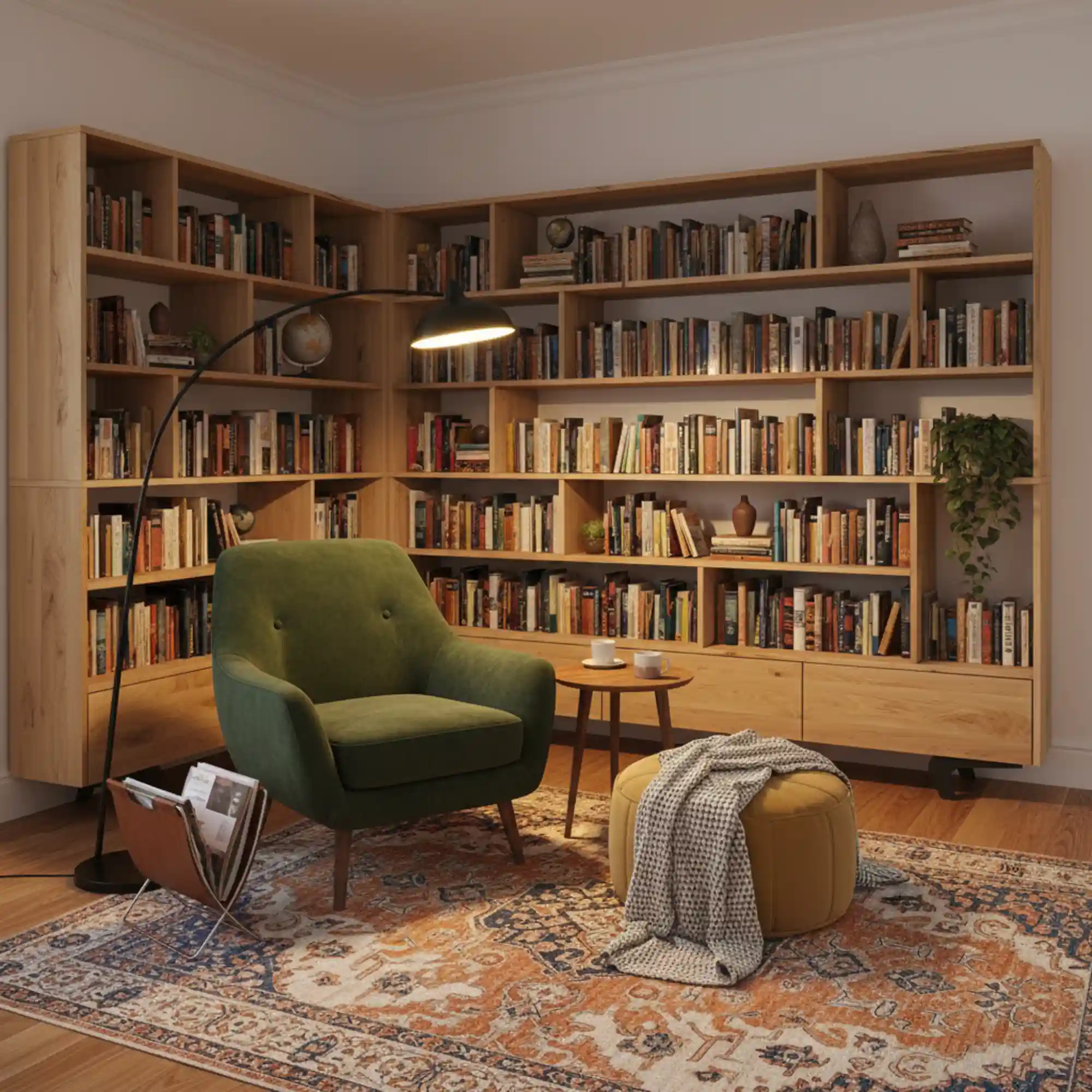 Over time, oak develops a refined patina while maintaining its strength. This makes a bespoke wooden bookcase not only a practical storage solution but also a long-term investment in quality craftsmanship.