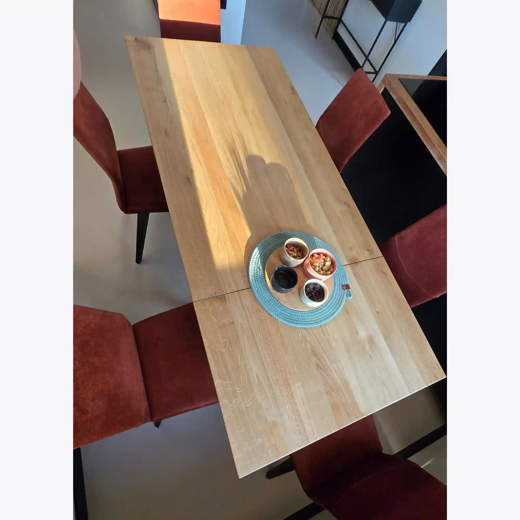 Piękny stół! Dostawki łatwe montażu, zachowana ciągłość uslojenia, za co duży plus. ? Stół jest bardzo porządnie wykonany, robi duże wrażenie