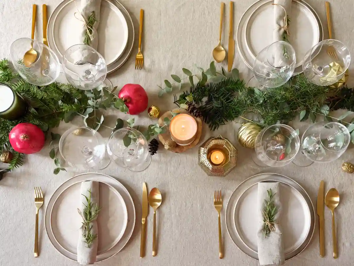 - Christmas Tableware: Use Christmas tableware with Christmas themes. Add a Christmas tree-shaped table runner or a table path.
