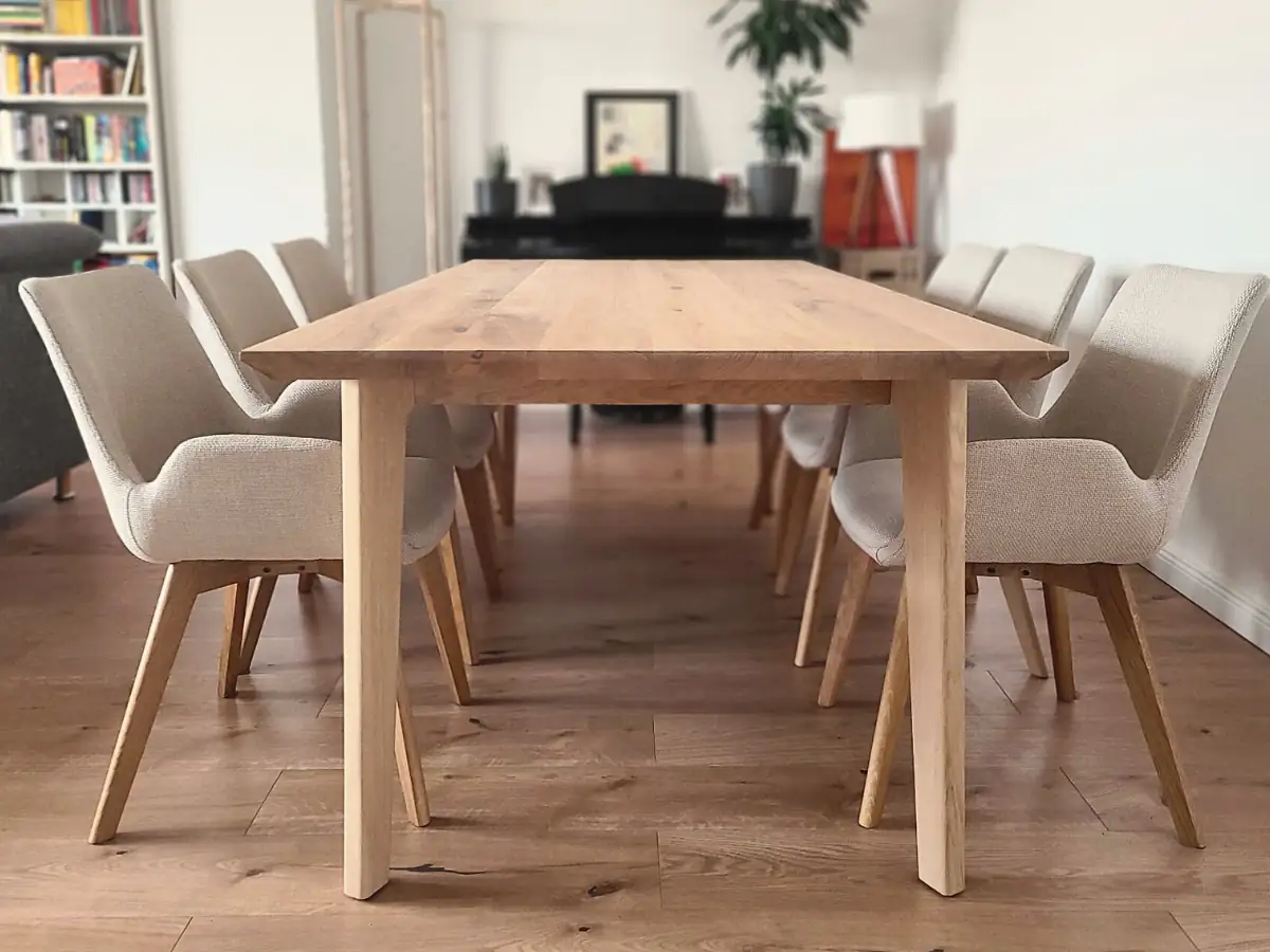It depends on several factors. First of all, think about the functionality and style you are interested in. Then check that the table will fit the size of the room and that you will have room for chairs and free movement around it. The material of the tabletop is another thing – our countertops are made of natural raw material, which is solid oak wood. It’s also a good idea to check if the table is easy to clean, especially if you plan to use it for everyday meals. Certainly, the dimensions of the available space are important so that the table fits into the room. Think about how many people will usually be using the table so that you have enough seats. Style is also a key issue – do you prefer something modern, classic, or maybe a round table? We offer tables of various sizes and styles, so in our offer you will surely find a wooden table that will be perfect for your home!